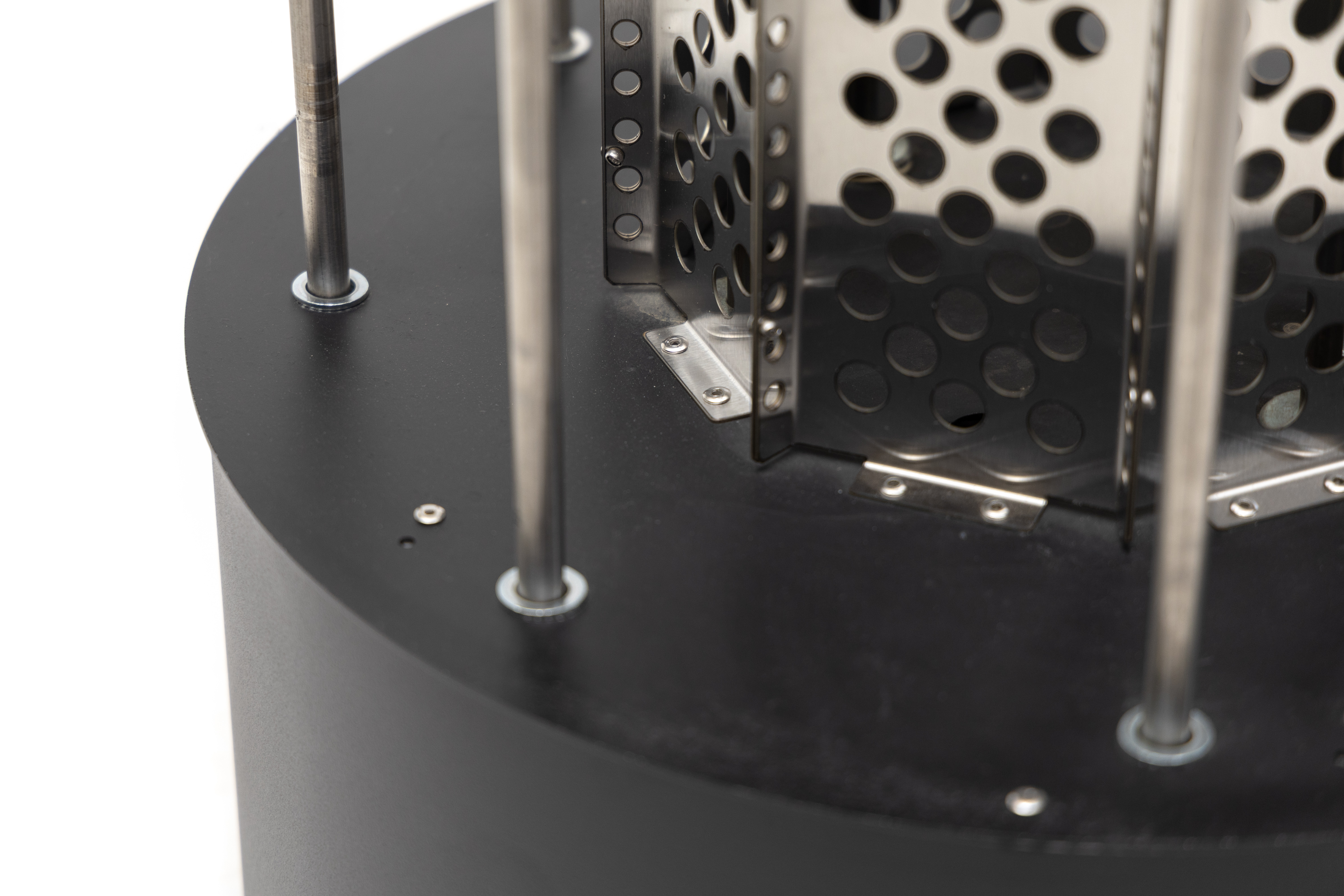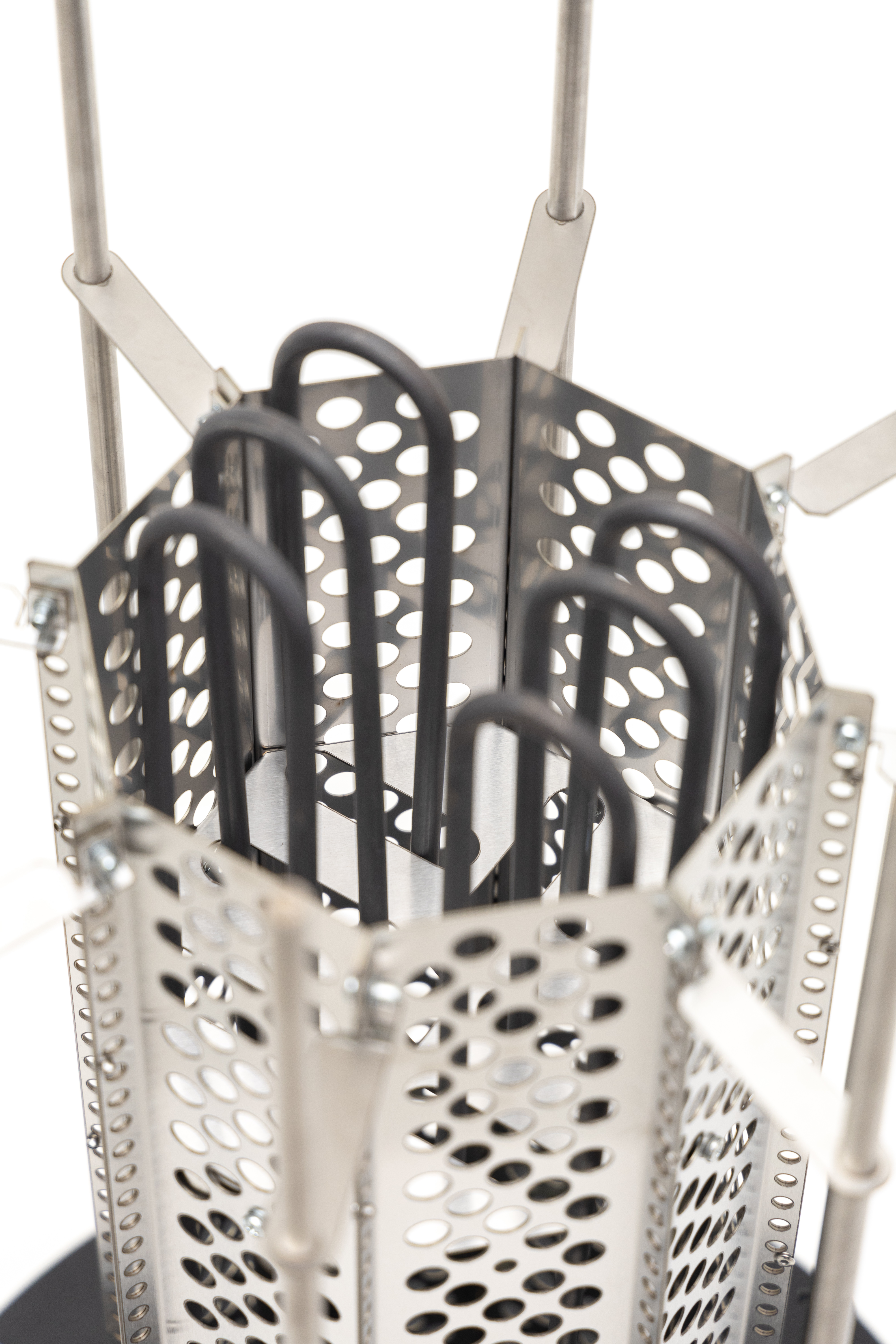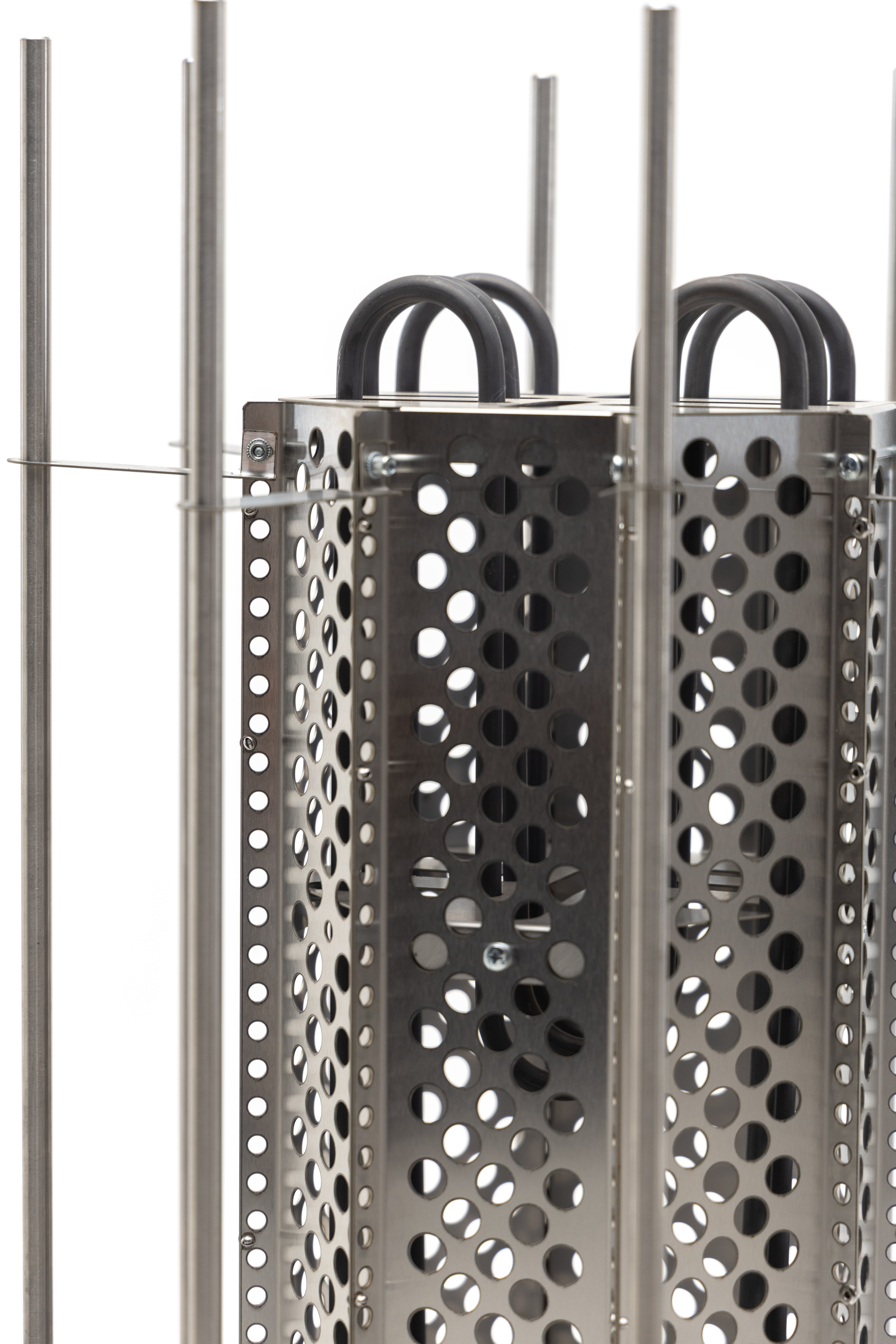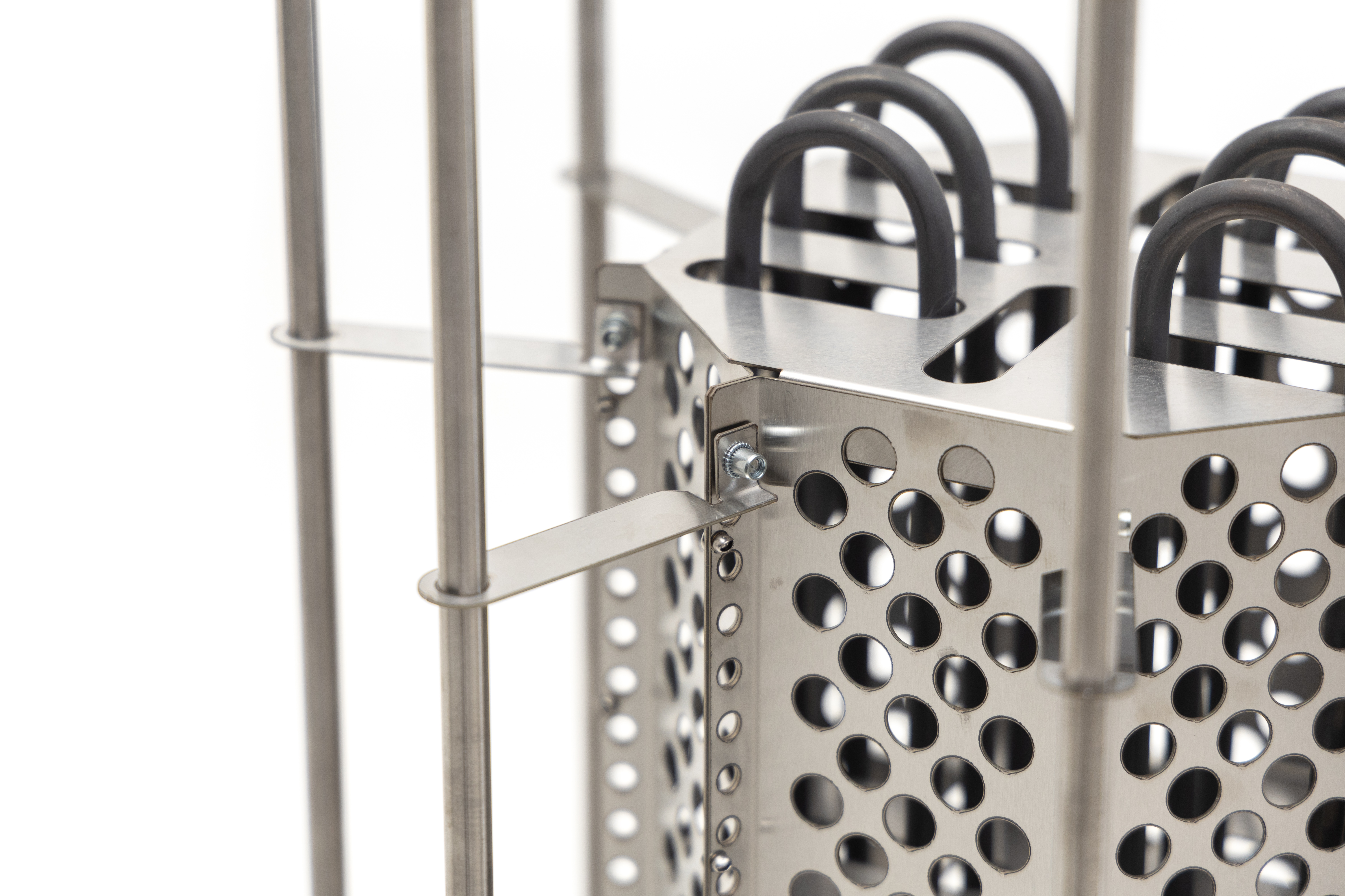 ТЭНы, защитный кожух для ТЭНов, шпильки для нанизывания камней, фиксаторы шпилек, нижняя часть – все сделано из жаростойкой, прочной, устойчивой к коррозии нержавеющей стали AISI 304.