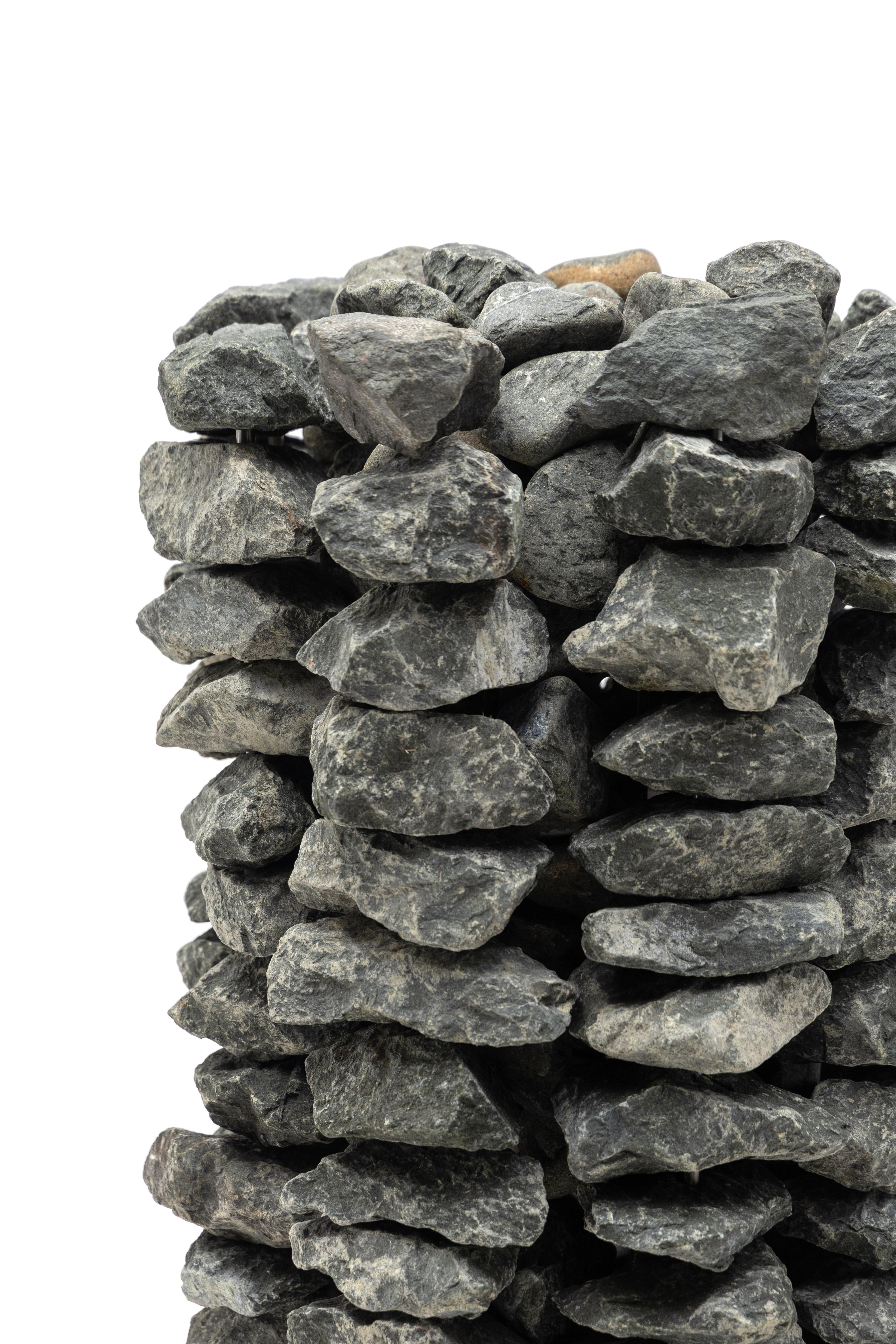 • Камень оливин-диабаз или жадеит со сквозными отверстиями – 8 коробок, для закладки внутрь (забутовки) – 4 коробки, финишные камни с глухими отверстиями – 1 коробка. Каждая коробка – 20 кг;