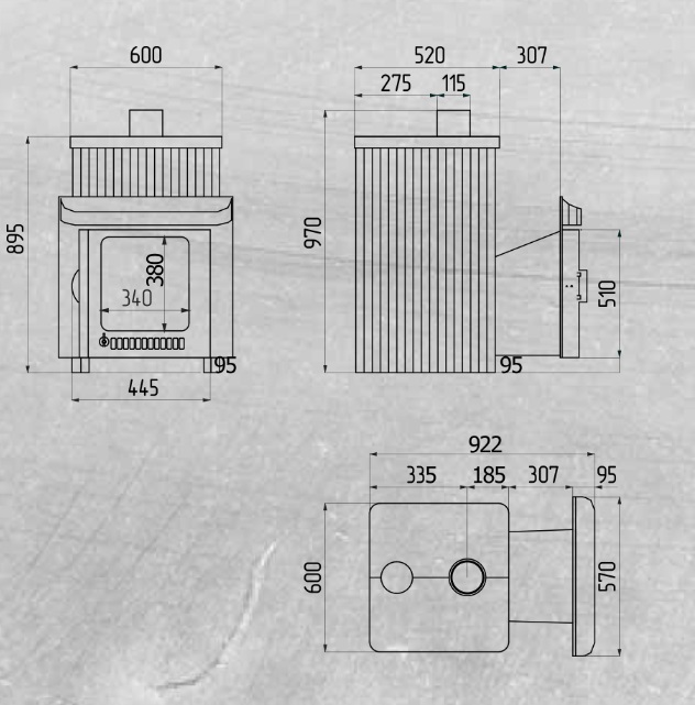 | Материал дверцы | Конструкционная сталь и Жаропрочное стекло |