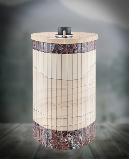 Банная печь Фёрингер Ламель Оптима ("Окаменевшее дерево" перенесённый рисунок+Россо Леванте)