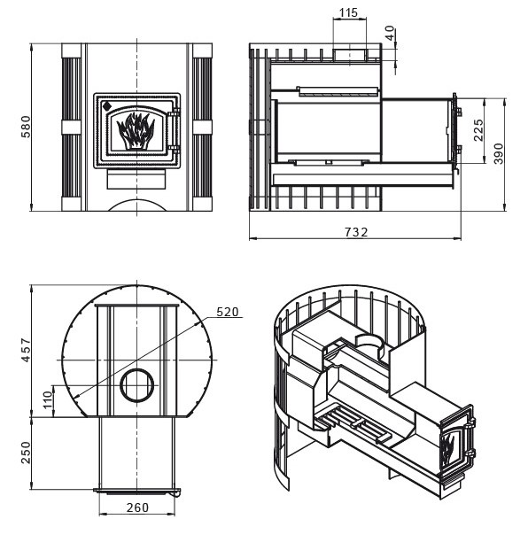 Диаметр дымохода: 115 мм
