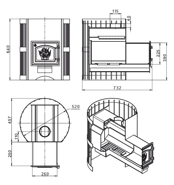 Диаметр дымохода: 115 мм