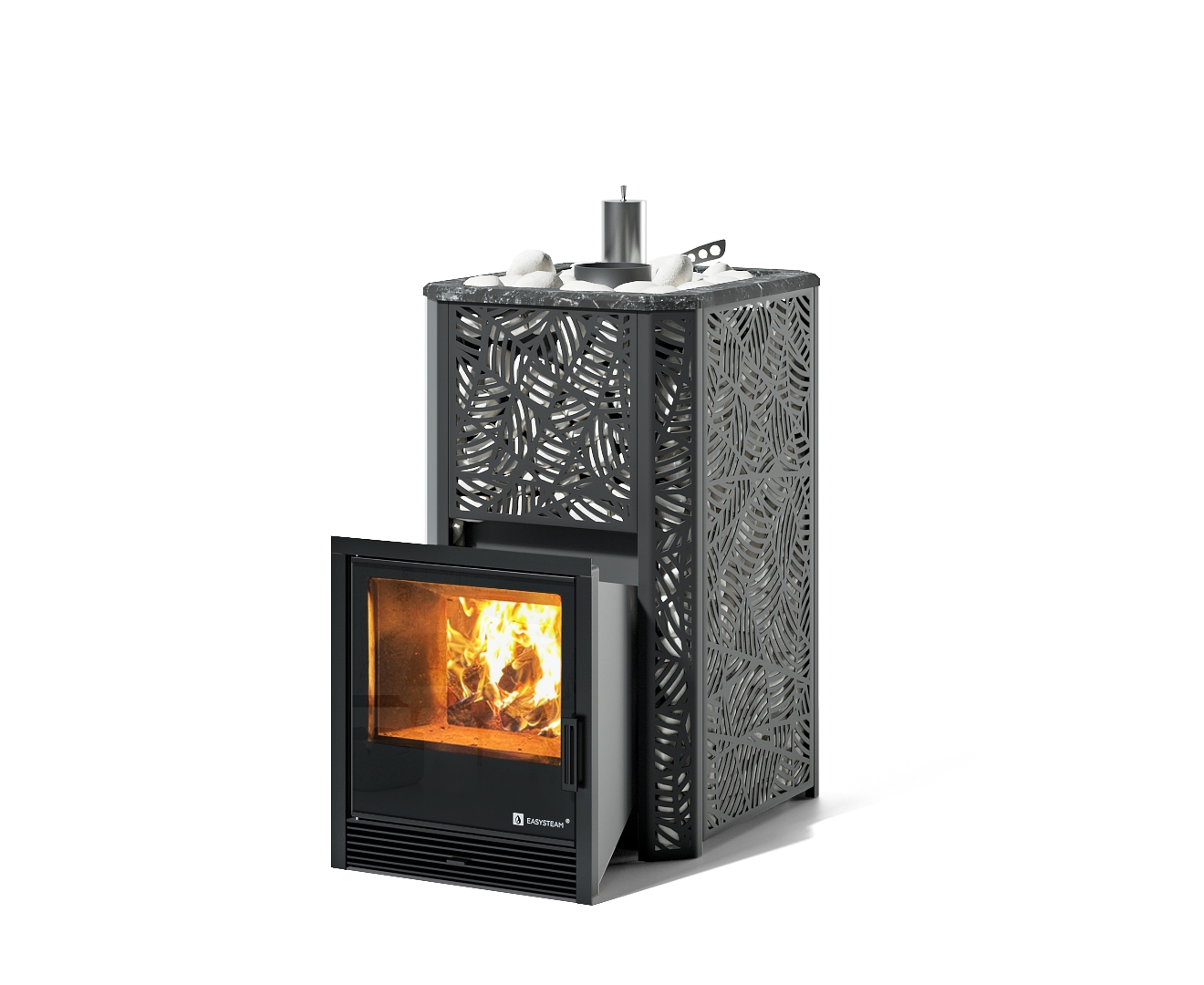 Массивная открытая каменка обеспечивает динамичный прогрев парного помещения и комфортный режим сауны.