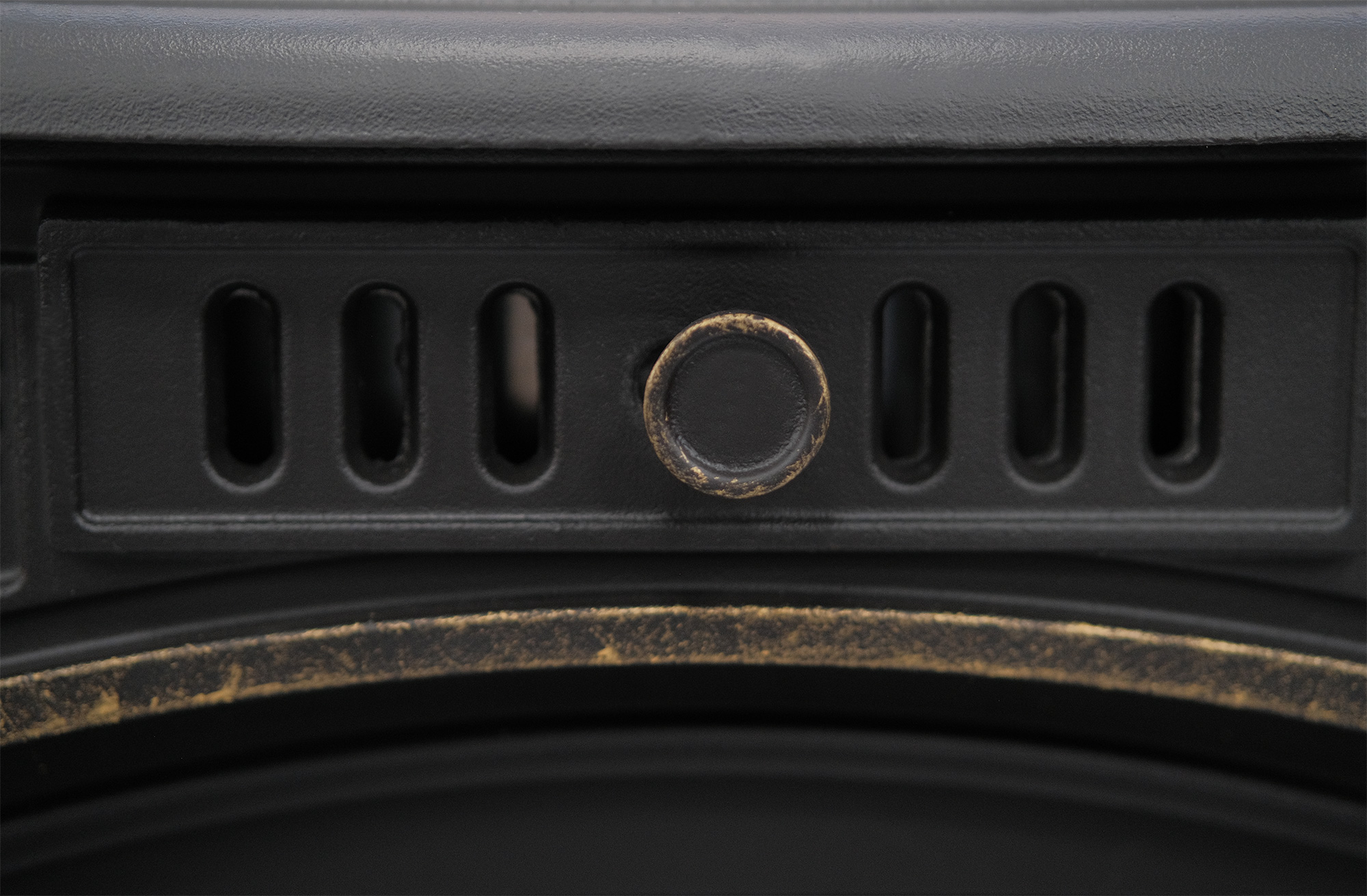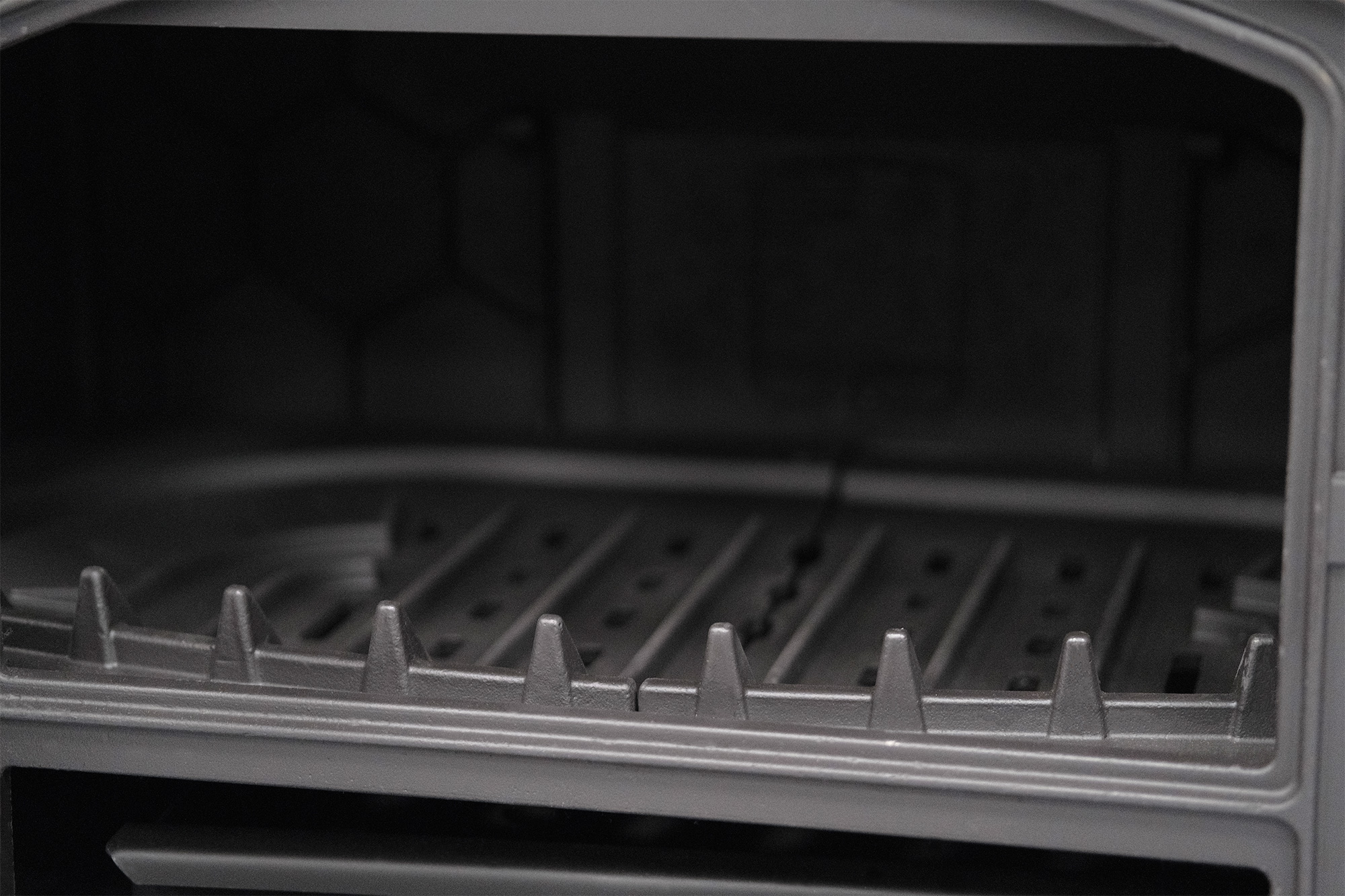 В верхней части топочной камеры установлен чугунный отбойник пламени, он же рассекатель, который предназначен для увеличения КПД печи и снижения высоты пламени внутри дымохода.