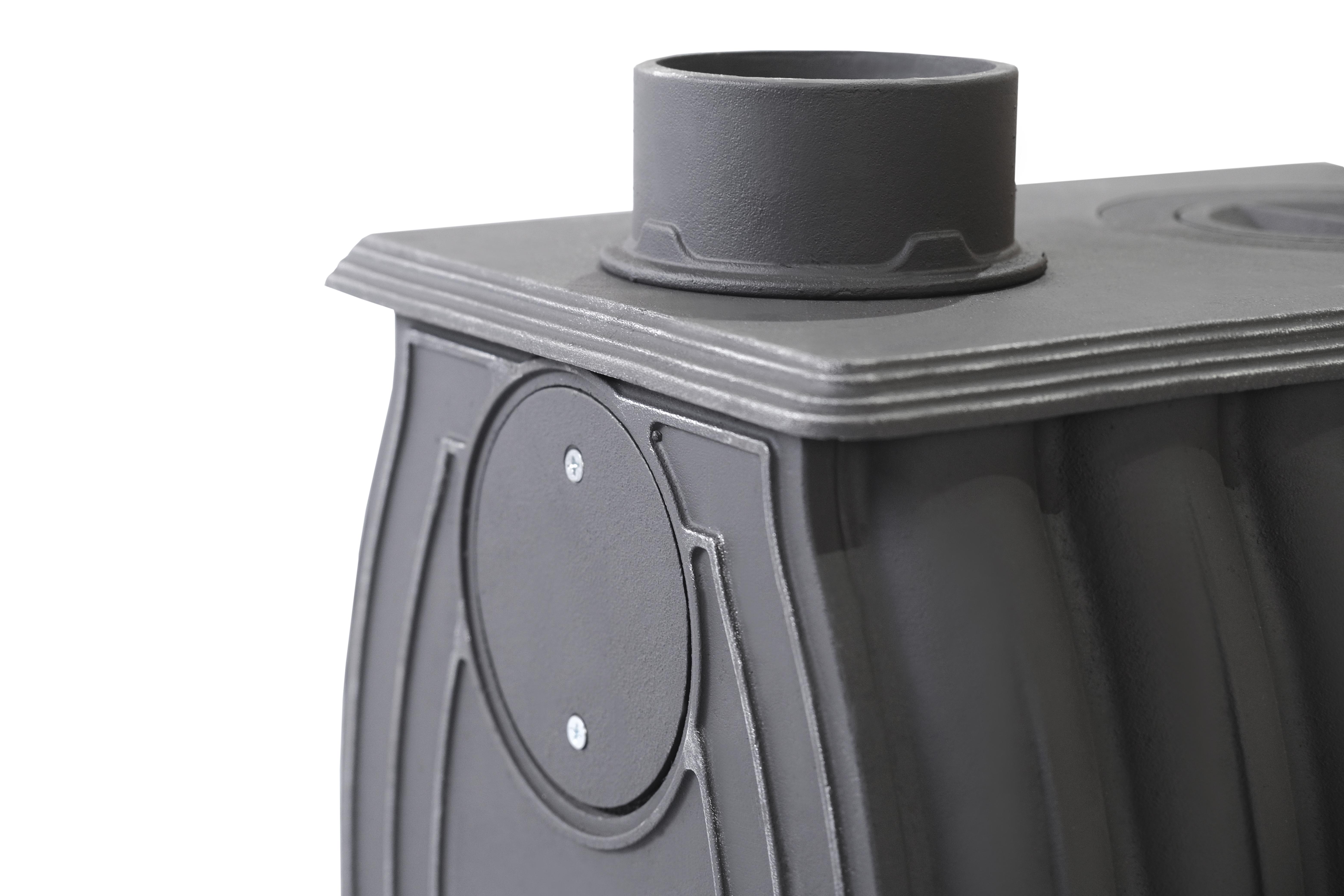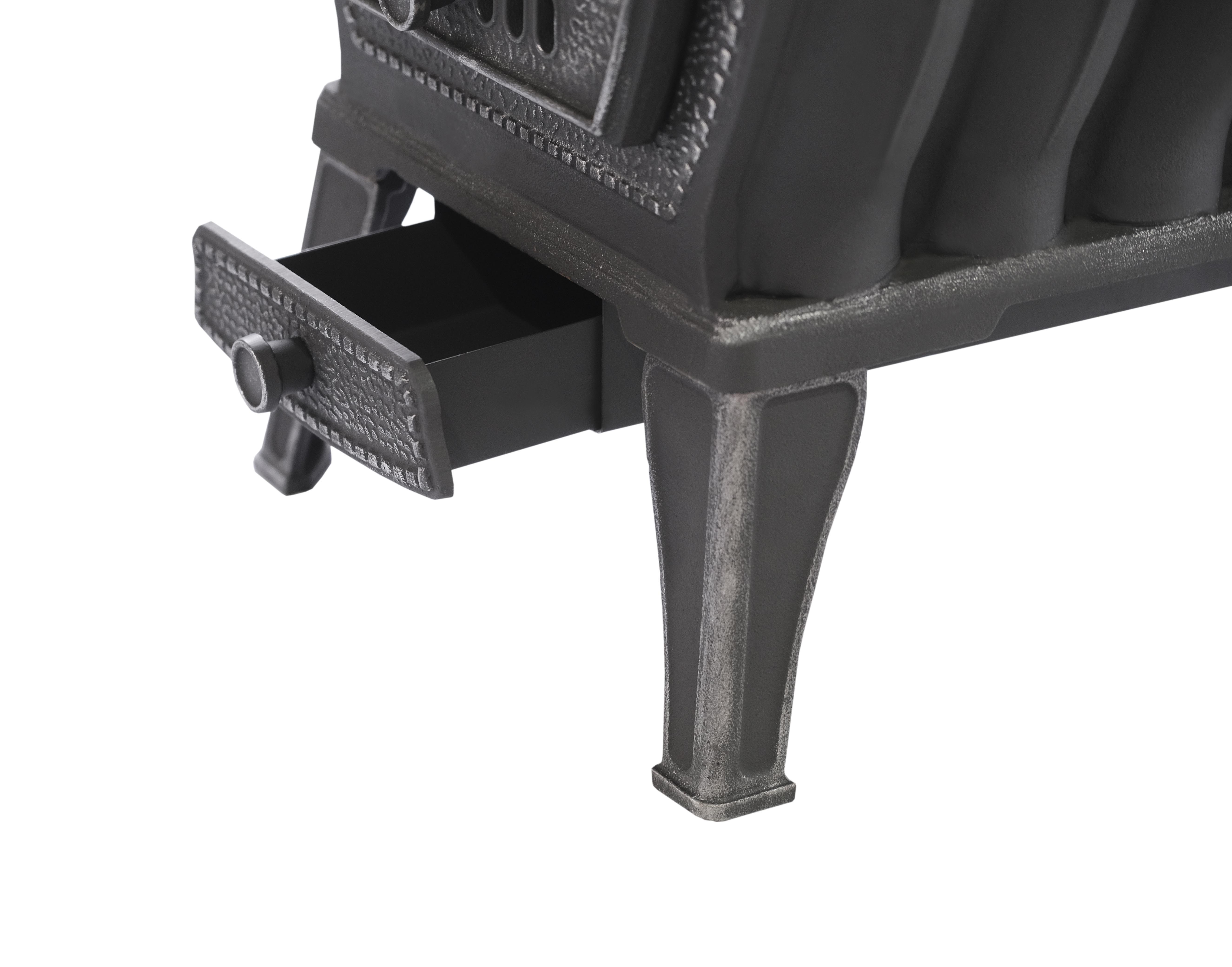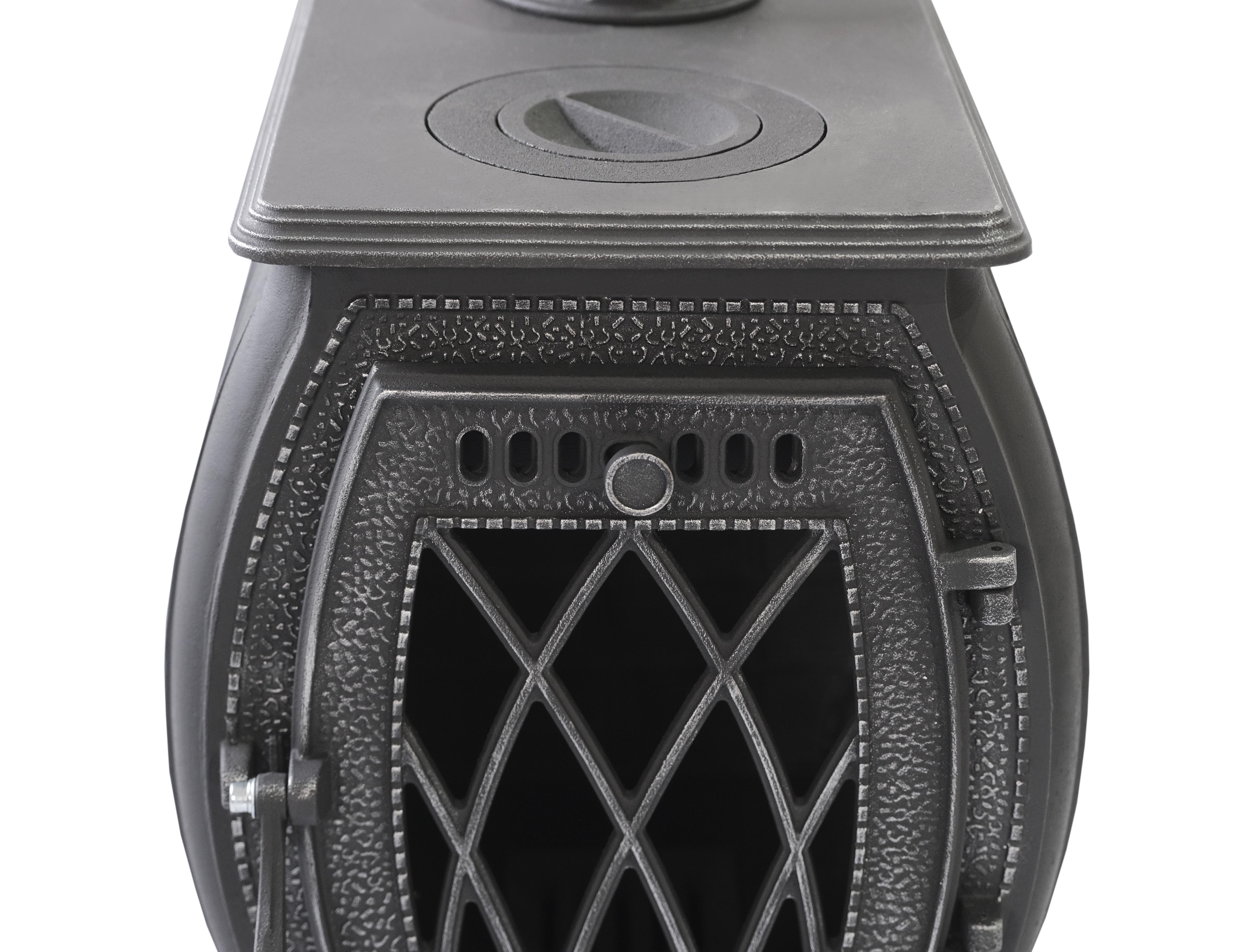 Чугунная печь «ПМЧ-10С» представляет собой универсальное и надежное решение для отопления частного загородного дома с объемом помещения до 180 кубических метров. Печь «ПМЧ-10С» изготавливается из высококачественного литого чугуна марки СЧ10-СЧ20, что является неоспоримым преимуществом перед зарубежными аналогами. Материал изготовления напрямую влияет на такие потребительские свойства изделия, как долговечность, надежность и износостойкость. Печь оснащена системой «Чистое стекло», что позволяет защитить стекло от копоти в процессе эксплуатации. Механизм запирания надежно фиксирует дверку простым поворотом ручки. Емкий зольный ящик позволит быстро и аккуратно удалить золу. В конструкции предусмотрено универсальное подключение дымохода, как сверху, так и к задней стенке печи при помощи съемного патрубка диаметром 130 мм. Это обеспечивает дополнительное удобство при установке и монтаже печи. Особые конструкционные решения обеспечивают экономный расход топлива, а наличие варочной поверхности с чугунными конфорками позволяет использовать печь для разогрева воды и приготовления пищи.