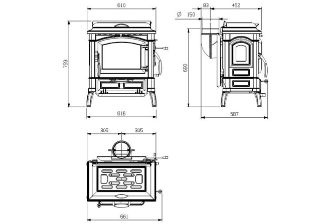 Печь оснащена варочной поверхностью из полированного чугуна, которую можно всегда закрыть изящной крышкой, если её не используете.