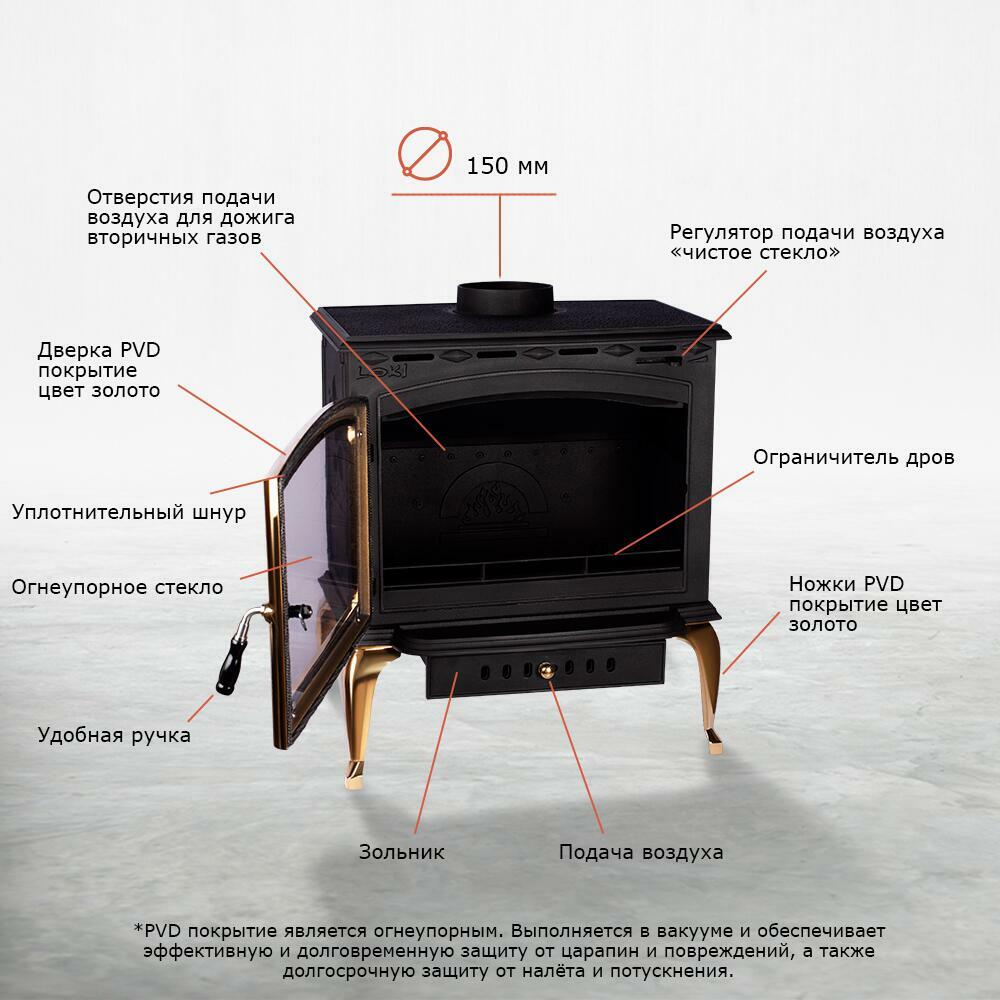 - Высокая мощность. С тепловой мощностью 14 кВт, печь с легкостью обогревает помещения до 140 кв.м., быстро создавая комфортный микроклимат даже в просторных комнатах.