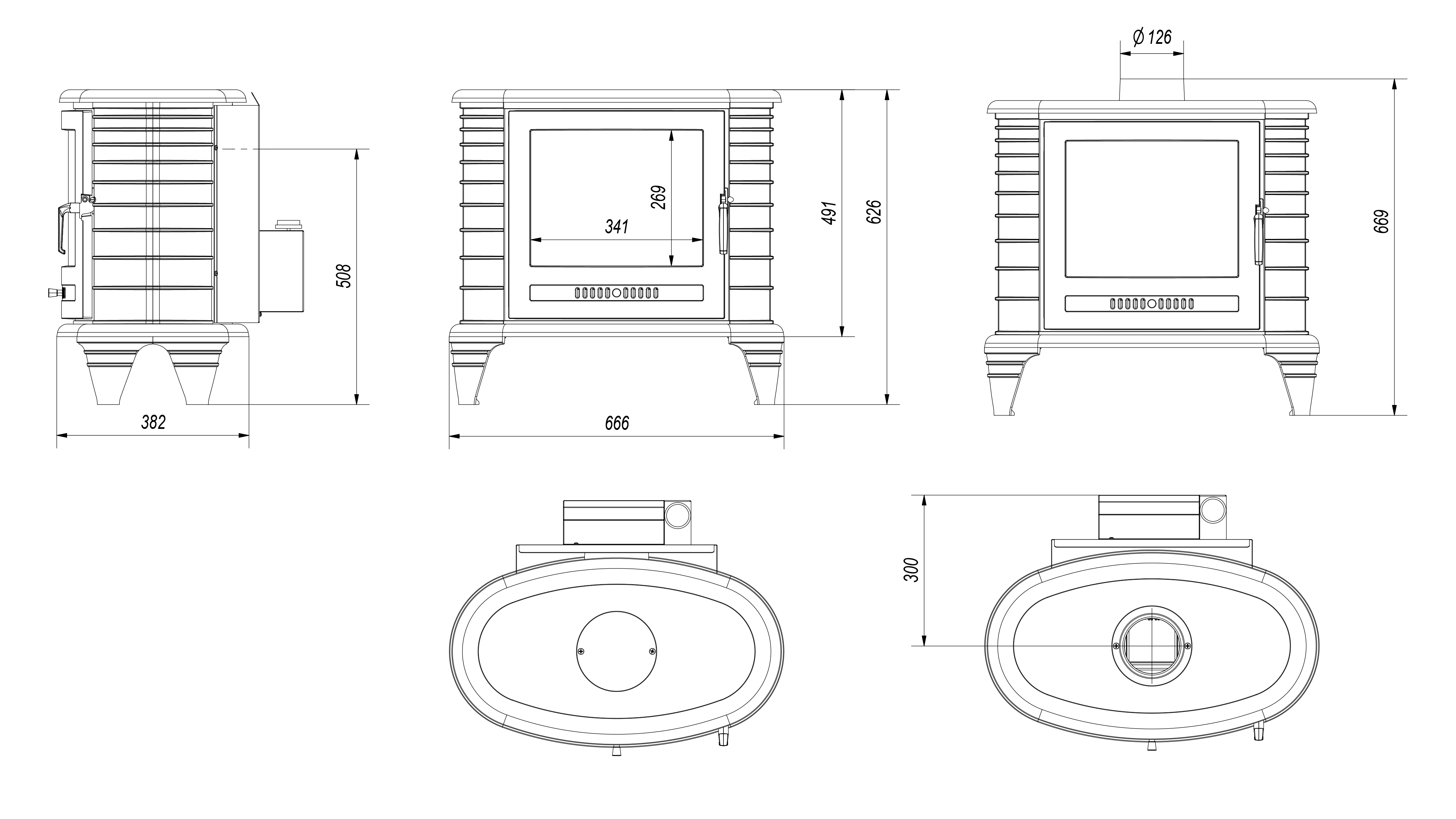 Чугунная печь Koza K 8 – имеет стильную овальную форму и минималистичную декоративную отделку. Печь изготовлена из высококачественного чугуна и имеет толщину стенок 8 мм. Печь имеет эффективную систему дожига и систему «чистое стекло». Ручки регулировки не нагреваются в процессе эксплуатации. Печь можно топить как дровами так и угольными брикетами (подробнее о видах допустимого топлива читайте в инструкции или уточняйте у продавца). Опционально может быть оснащена турбиной или термостатом.