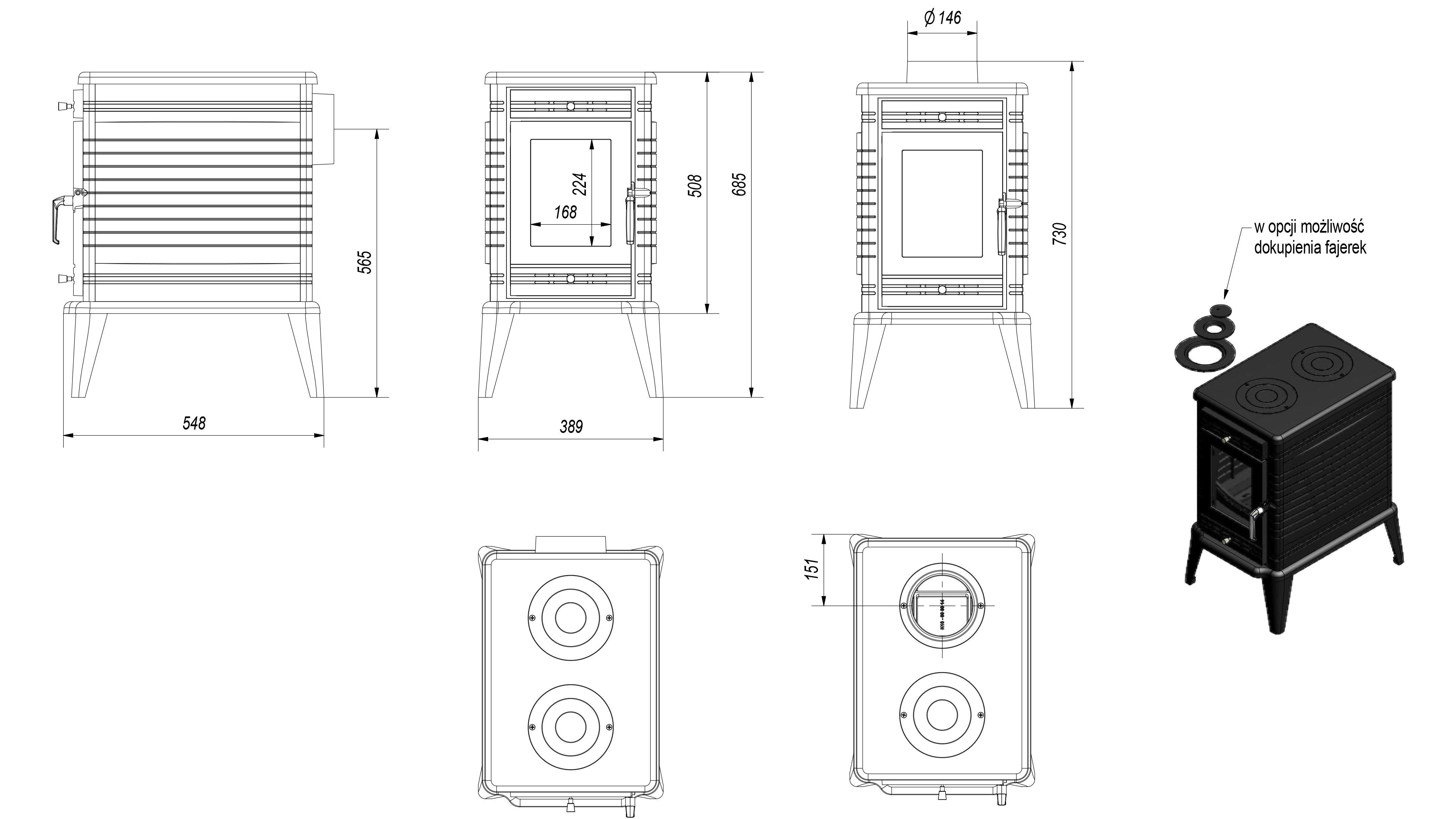 Чугунная печь Koza K 10 – это чугунная печь отлично подходящая для обогрева загородного домика. Имея толщину стенок 8 мм, она изготовлена из высококачественного чугуна. Печь оборудования системой дожига и ручками регулировки подачи воздуха на горение извне. Ручки из специального материала не нагреваются в процессе эксплуатации. Печь можно топить не только дровами, но и угольными брикетами (подробнее о видах допустимого топлива читайте в инструкции или уточняйте у продавца). Данная печь снабжена варочной поверхностью. Температура плиты достигает 70-100 градусов. Т.е. вы можете вскипятить воду, приготовить или подогреть пищу.