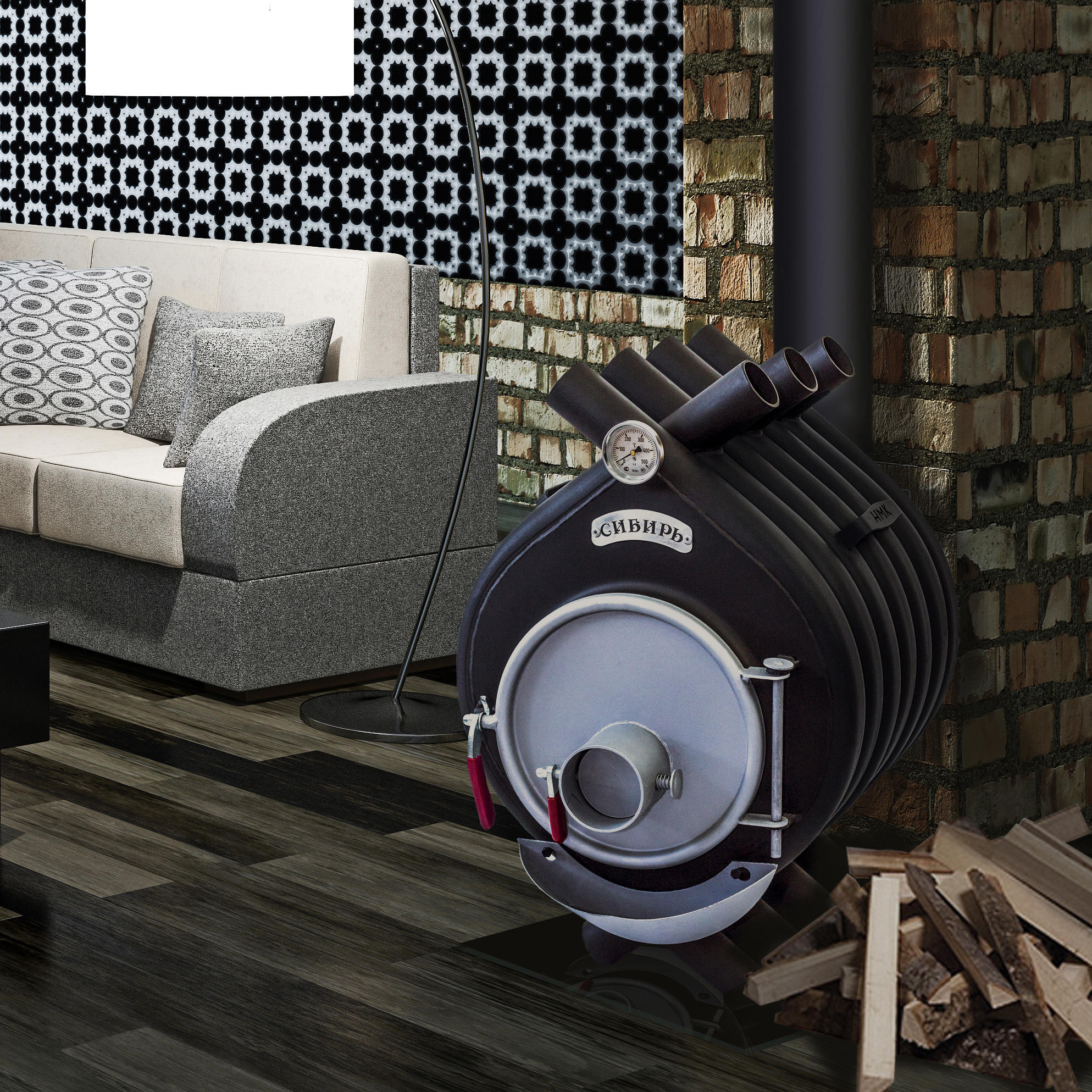 Воздухогрейная печь "Сибирь БВ" - 120 - это инновационная запатентованная модель завода "НМК". Печь представляет собой цельнометаллическую конструкцию, состоящую из многочисленных соединенных между собой металлических труб круглого сечения в количестве 7 штук, обеспечивающую естественную конвекцию, благодаря чему происходит быстрое нагревание воздуха и его плавное распределение по всему объему помещения. За основу был взят канадский отопительный аналог, который был технически и конструкционно доработан, проверен и адаптирован под суровые условия со значительными перепадами среднегодовых температур.