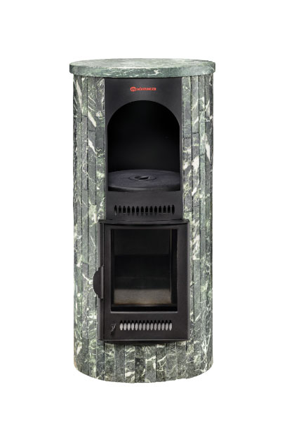 Отопительные печи “Feringer” можно использовать в базовой комплектации в натуральной облицовке. Такой вариант более предпочтителен, так как природный камень быстро прогревается и может долгое время удерживать тепло. Так, от одной закладки дров печь может полностью прогреться и использоваться для: