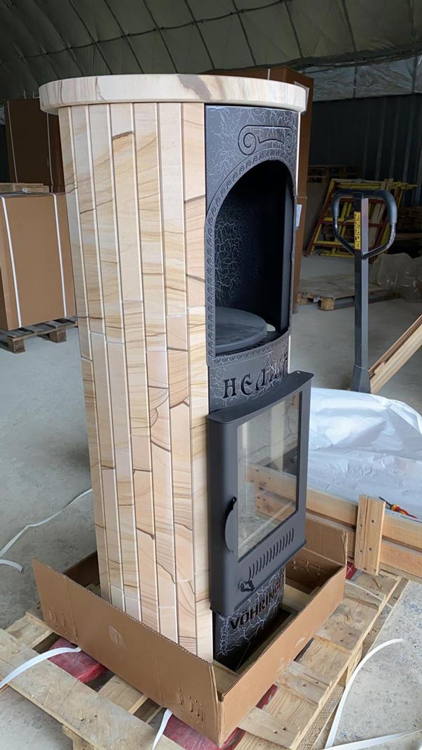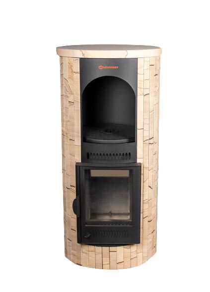 Отопительные печи “Feringer” можно использовать в базовой комплектации в натуральной облицовке. Такой вариант более предпочтителен, так как природный камень быстро прогревается и может долгое время удерживать тепло. Так, от одной закладки дров печь может полностью прогреться и использоваться для: