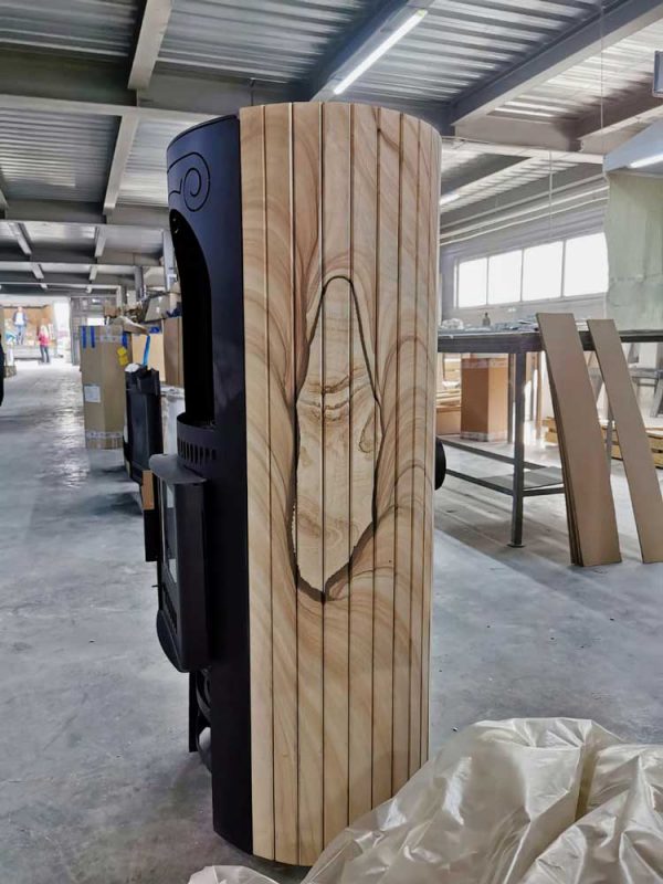 Отопительно-варочная печь Лада в облицовке Окаменевшее дерево перенесенный рисунок на 150 кубометров – это дровяная печь бесколосникового типа с устройством для регулировки процесса горения. Печь очень удобна в эксплуатации, вместительна и позволяет поддерживать тепло в доме, не менее 5-8 часов, от одной закладки дров! Варочная поверхность из качественного чугуна, позволит легко и быстро приготовить еду, или просто вскипятить воду. В режиме разогрева температура в помещении за один час, повышается на 16 – 18 градусов, а в режиме медленного горения, печь представляет собой горячий радиатор, с температурой около 100 градусов.