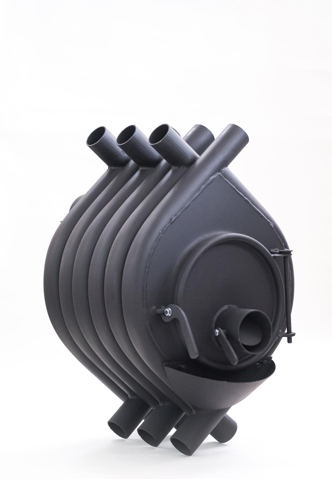 За счет использования сплошного ряда теплообменных труб в боковых стенках увеличена поверхность теплоотдачи и решена проблема интенсивного инфракрасного излучения при номинальной мощности эксплуатации печи. Холодный воздух, из отапливаемого помещения, за счет конвекции поступает в нижние отверстия теплообменных труб, а через верхние возвращается в помещение нагретым до температуры от 60 до 80 градусов. Таким образом, воздух равномерно нагревается и перемешивается по всему объему помещения. Печь имеет двухкамерную топку, в котором методом тлеющего горения в две стадии происходит сжигание топлива и дожиг печных газов. Печные газы, образовавшиеся от тления дров в нижней (первичной) камере поступают в верхнюю (вторичную) камеру, где дожигаются за счет подачи в нее, через специальные инжекторы подогретого воздуха из отапливаемого помещения. .
