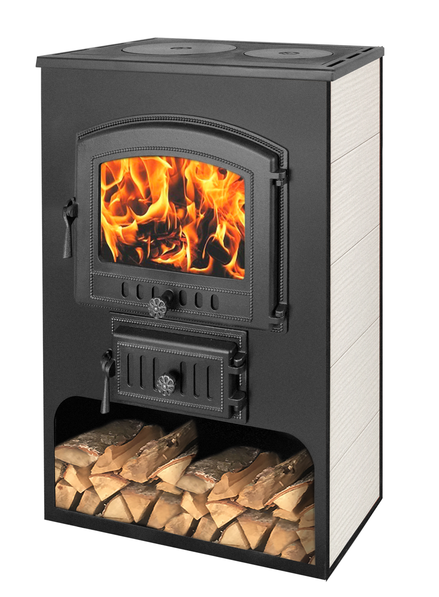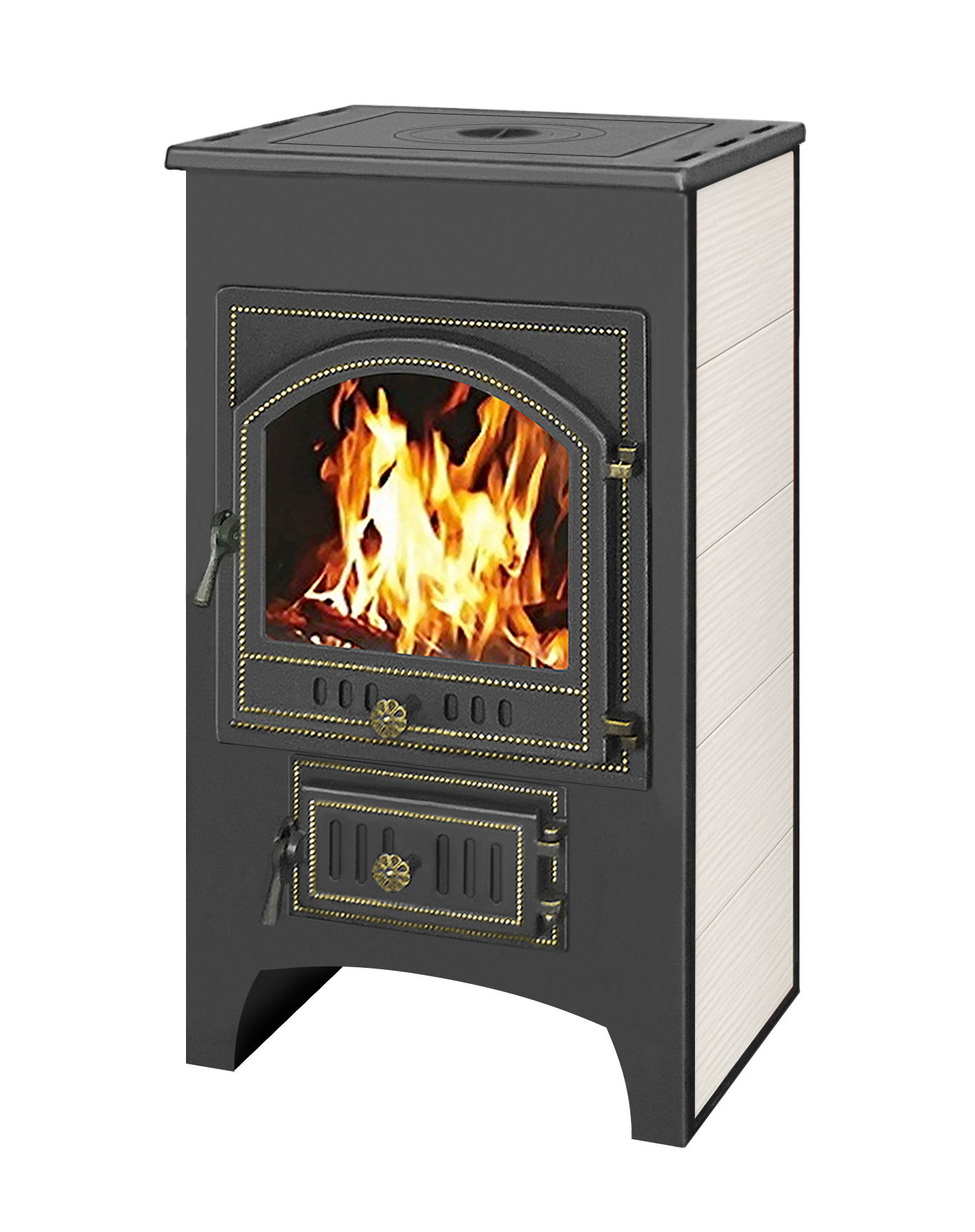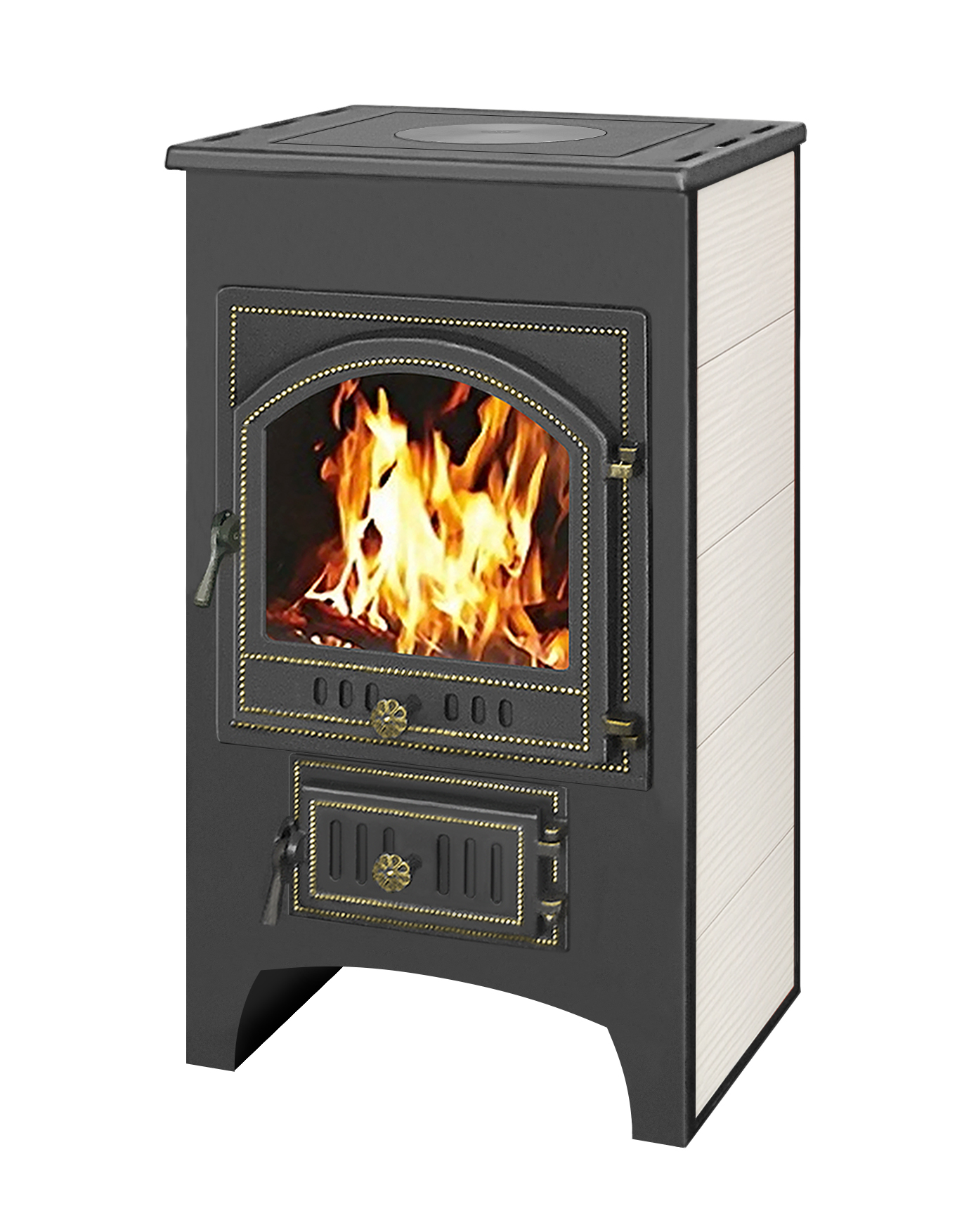 Для улучшения характеристик часто используются комбинации материалов. Чугунная топка не подвержена прогоранию, а стальной корпус более устойчив к механическим воздействиям. Облицовка стальных стенок керамикой выполняет не только декоративную функцию, но также служит для лучшего сбережения тепла. Поскольку сама плитка не нагревается до температур, способных вызвать ожог, такая отделка способствует безопасной эксплуатации прибора.