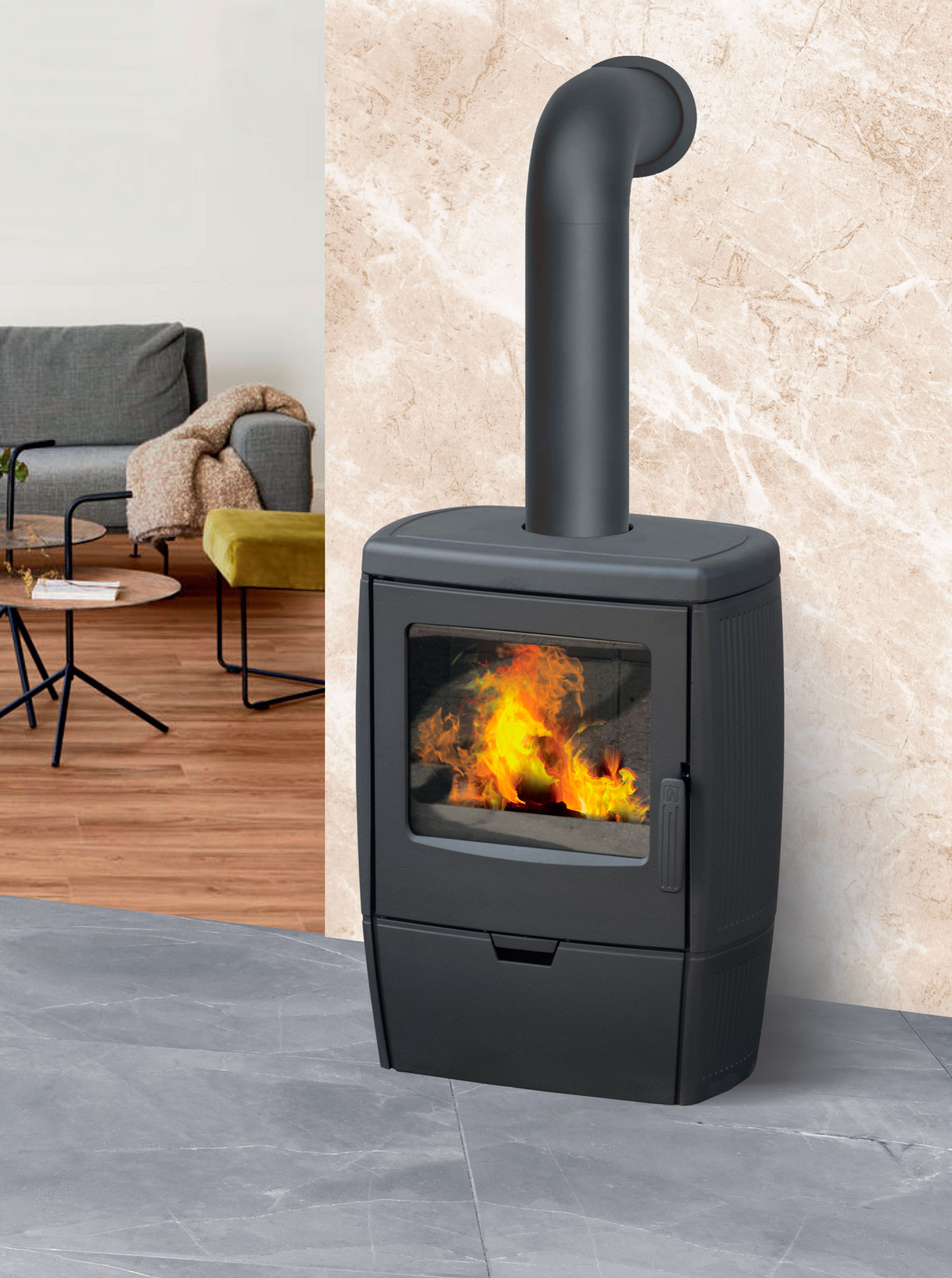Чугунная отопительная печь-камин на дровах в стильном минималистичном дизайне и компактных габаритах для отопления жилых и коммерческих пространств общей площадью до 160 кубических метров. Отопительный прибор полностью изготовлен из фирменного чугуна PLAMEN, отлитого на собственном производстве фабрики в Хорватии. Изделие разработано и произведено согласно строгим стандартам Европейского союза и требованиям Эко-дизайна.