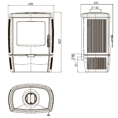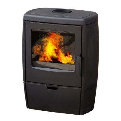 Матовая поверхность чугуна покрыта специальной эмалью для сохранения эстетических достоинств печи в течение всего срока эксплуатации. Простой, но очень стильный дизайн сконцентрирован на немного округлых, обтекаемых формах печи-камина, отсутствии лишних деталей, минималистичном декоре, плавных линях и просторной дверце, открывающей красивый обзор на горение пламени в топке. Дверца печи укомплектована термоустойчивым стеклом и удобной ручкой для открывания. Габариты, конструкция и верхнее подключение дымохода делают печь исключительно эргономичной и комфортной в расположении даже в маленьких помещениях.