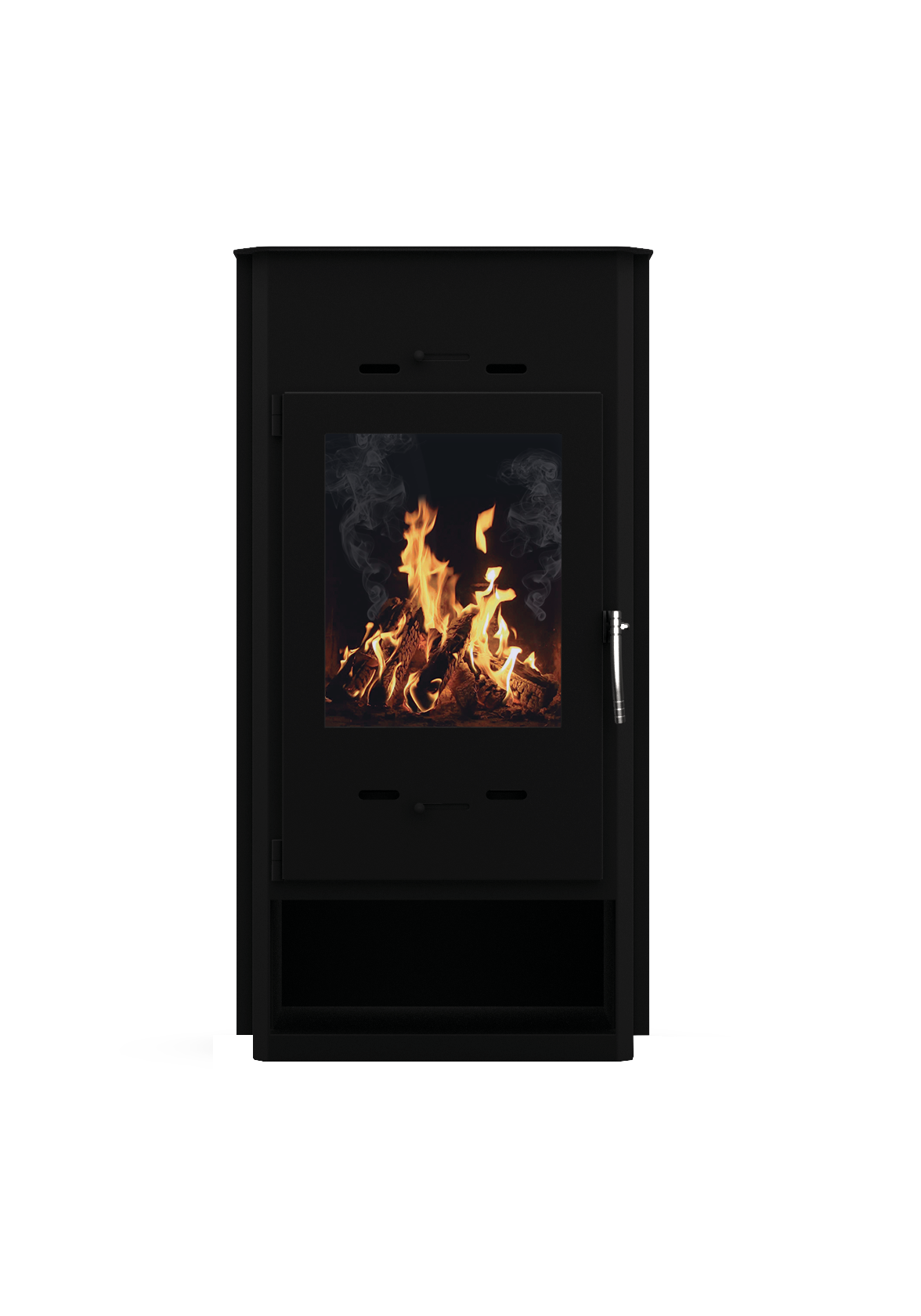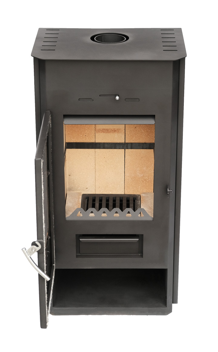 Топочная камера выложена шамотом для защиты металла от деформации под воздействие высоких температур. Чтобы стекло в дверце не темнело и пачкалось печь оснащена системой обдува стекла. Размер стекла позволяет наблюдать игру пламени в топке.