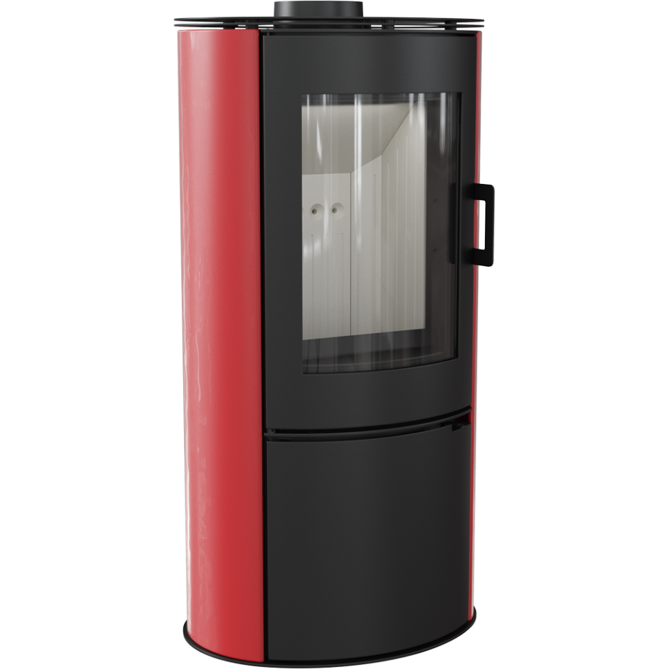 Новинка польского производителя Kratki.pl. Печь имеет современный дизайн, верхнее и заднее подключение к дымоходу(для заднего подключения необходимо приобрести заглушку для верхней плиты!!!). Материал: камера сгорания, корпус печи, верхняя плита и дверца изготовлены из стали. Ручка дверцы современного дизайна (опционально с доводчиком). Встроенная регулировка подачи внешнего первичного воздуха из-под колосниковой решетки (патрубок диаметром 100 мм). Дверца с большим панорамным стеклом. Камера сгорания футерована керамикой Acumotte красного цвета.