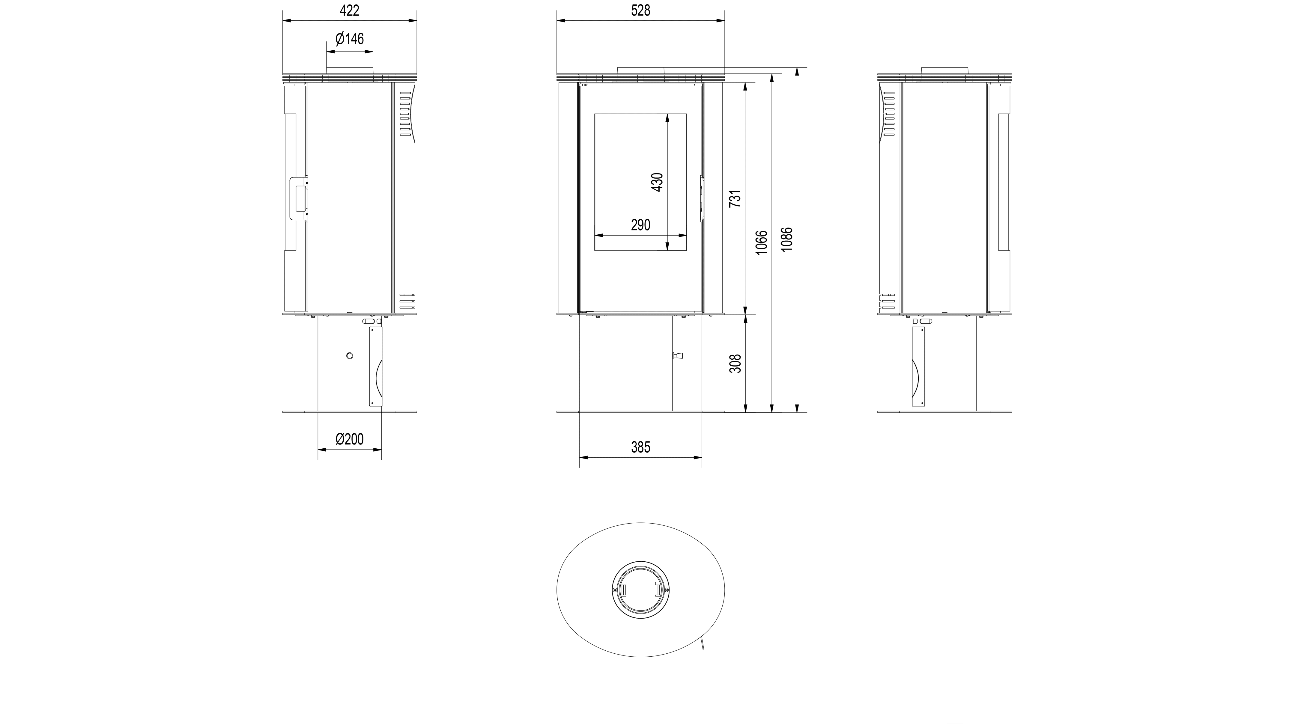 Печь установлена на изящной базе ноге.