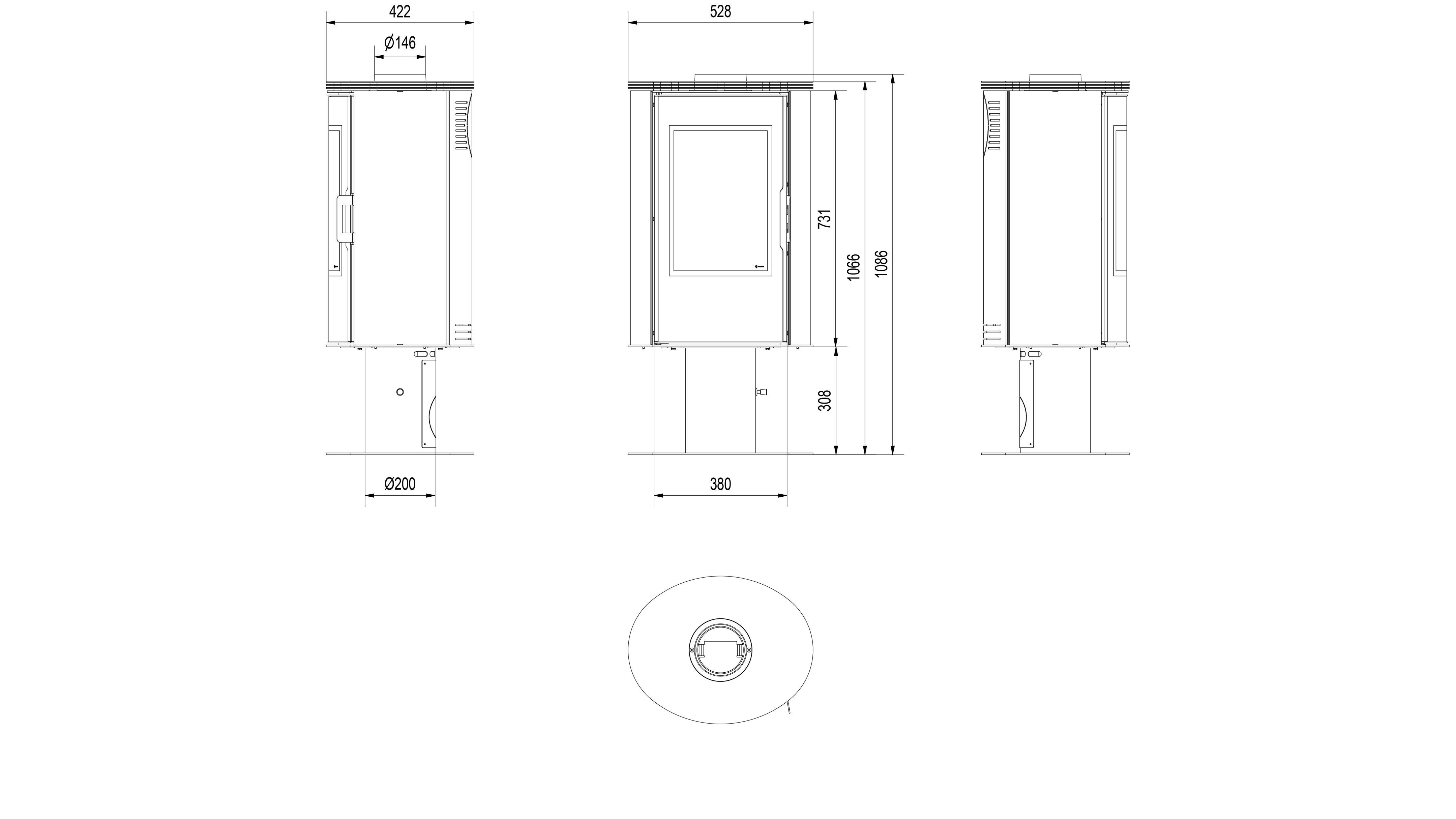 Печь установлена на изящной базе ноге. Имеет декоративное термостойкое стекло, выдерживающее температуру до 660 ° C. Расположенное в фасадной части оно придает камину современный и элегантный вид, визуально увеличивает переднюю часть печи-камина.