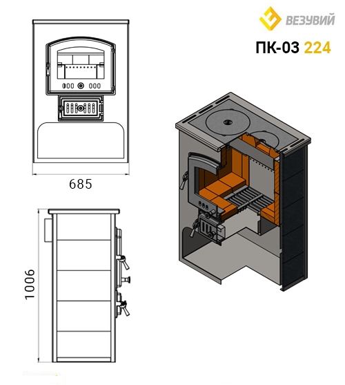 Преимущество Печи-камина ВЕЗУВИЙ ПК-03 (224) с плитой