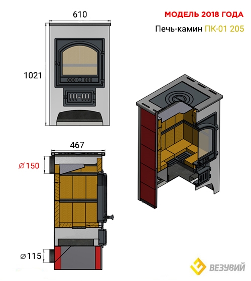 Преимущество Печи-камина ВЕЗУВИЙ ПК-01 (205) с плитой