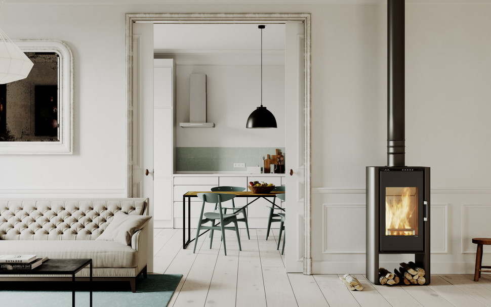 Печь DEFRO HOME SOLUM LOG является версией с прямым стеклом и нишей для дров, которая позволяет легко разместить объем поленьев на 2-3 растопки. Данная опция позволяет сэкономить место, так как Вам не требуется дополнительно устанавливать дровницу. Как Вы знаете, сухие дрова дают больший КПД, так что дровница под топкой – хорошей подспорье эффективности.