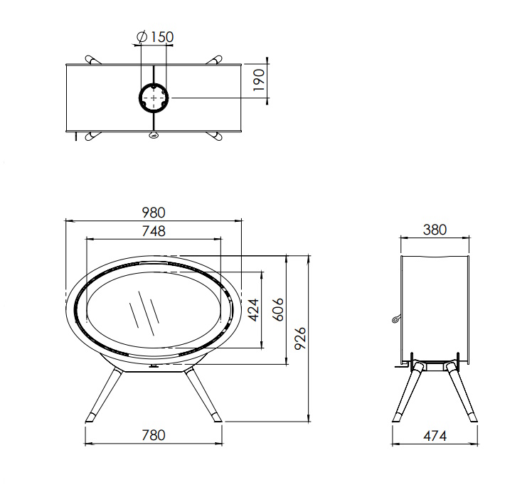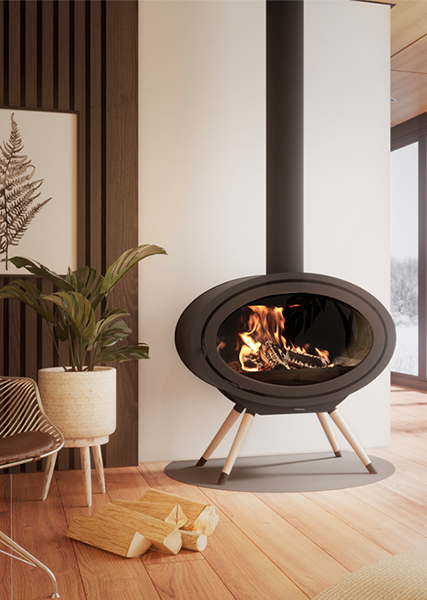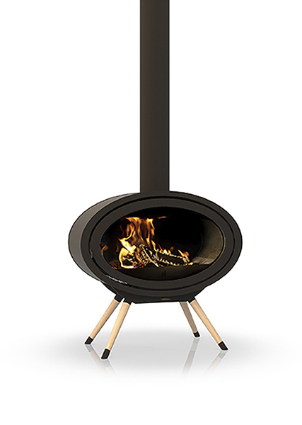Это уникальный дизайнерский камин от Dik Geurts с большой овальной топкой и деревянными ножками. Благодаря такой форме вы сможете полноценно любоваться пламенем. Интенсивность огня легко регулировать с помощью ползунка подачи воздуха. Внутренняя поверхность из темного антрацитового вермикулита обеспечивает оптимальное и чистое горение.