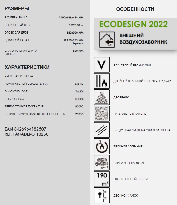 Особенности печи-камина Panadero Sydney: