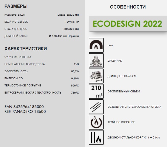 Превосходство в дизайне и отоплении: Panadero Coimbra - это не просто печь, это угловой акцент, придающий интерьеру функциональность и теплоту. Стальной корпус толщиной 4 мм обеспечивает надежность и быстрый прогрев всего за 15-20 минут. Нижняя дровница и ниша для дров (305 х 325 мм) делают процесс поддержания огня удобным и эффективным.