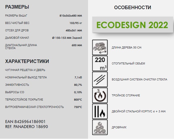 Классическая дровяная печь Panadero Saphir воплощает в себе все преимущества современного экодизайна, обеспечивая надежный и стильный источник тепла для вашего дома.