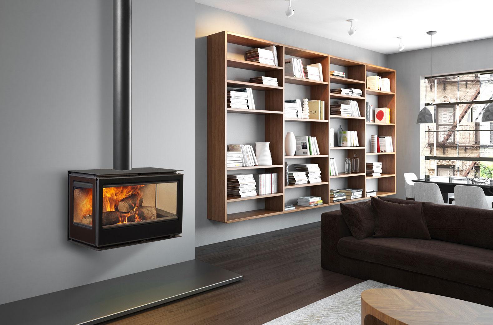 Корпус печи выполнен из прочной стали и покрыт специальной жаропрочной эмалью в стильном антрацитовом цвете. Компактность не умаляет ее способности эффективно нагревать помещение, а трехстороннее остекление приглашает вас наслаждаться красотой пламени из любой точки комнаты.