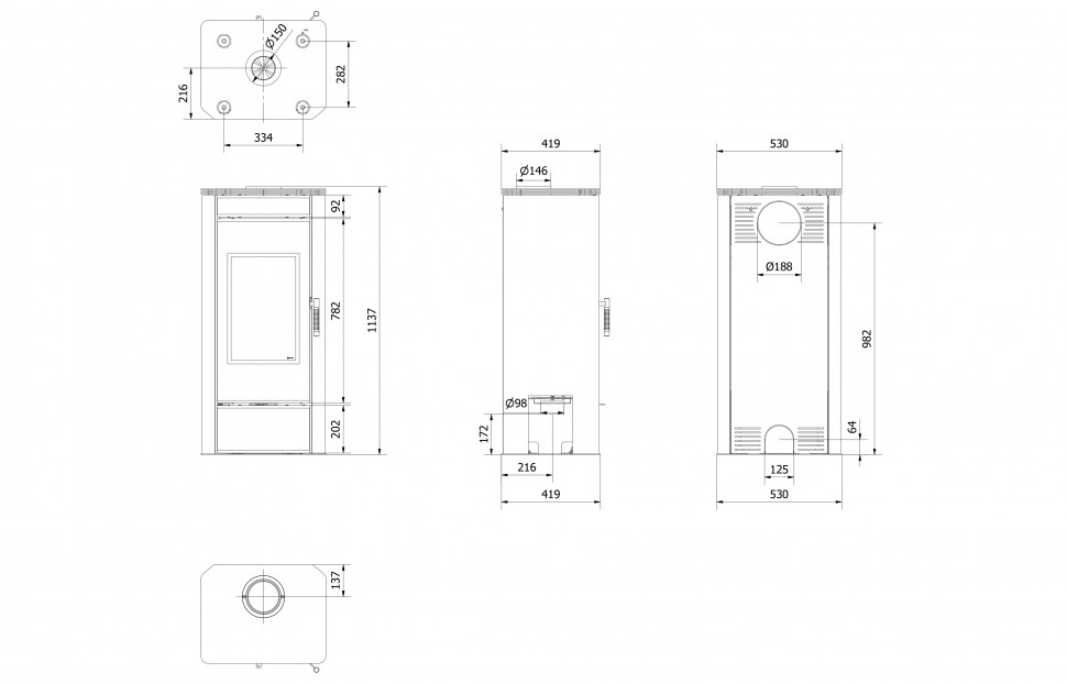 | Диаметр дымохода | 150 мм |