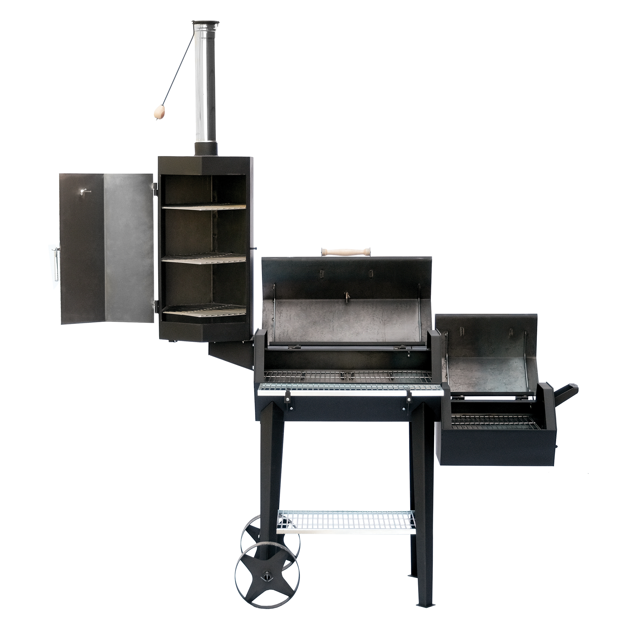 Все узлы смокера выполнены из 3-х миллиметровой высококачественной стали. Общий вес установки составляет более 100 кг.