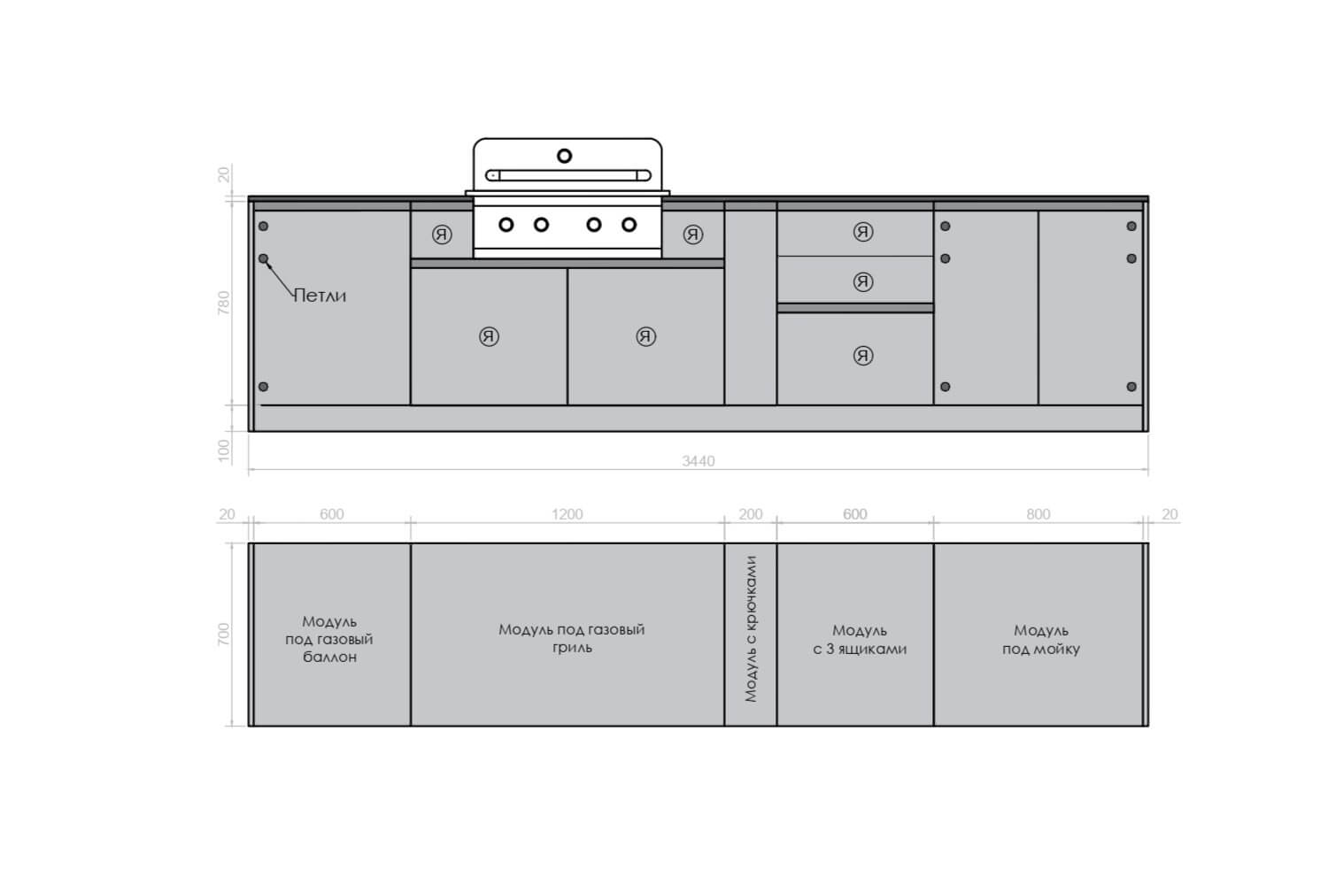 Кухня Astov BBQ № 2 (ширина 3440 мм) (готовое решение)