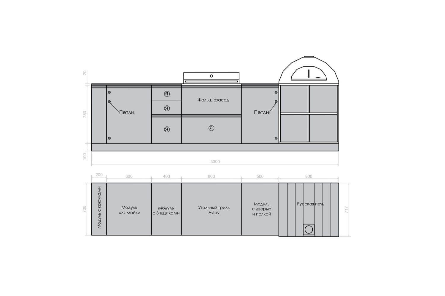 Кухня Astov BBQ № 4 (ширина 3300 мм)(готовое решение)