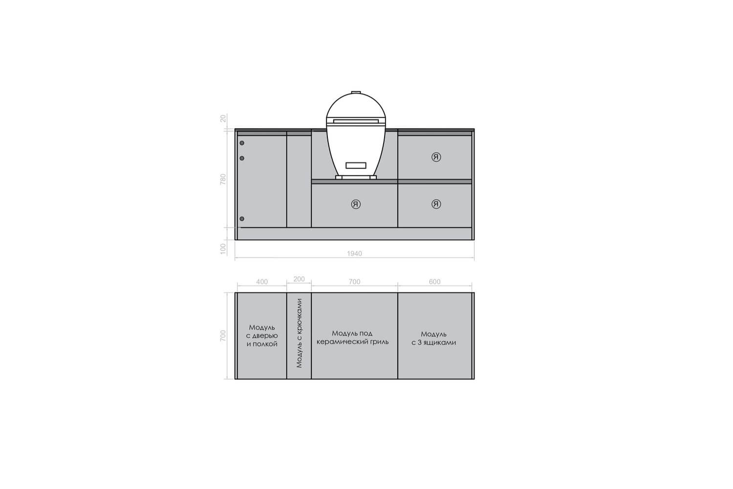 Кухня Astov BBQ № 7 (ширина 1940 мм)(готовое решение)