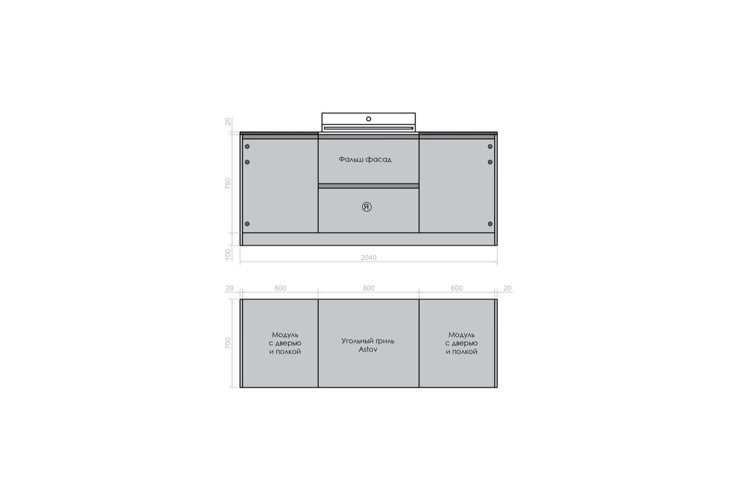 Кухня Astov BBQ № 8 (ширина 2040 мм)(готовое решение)