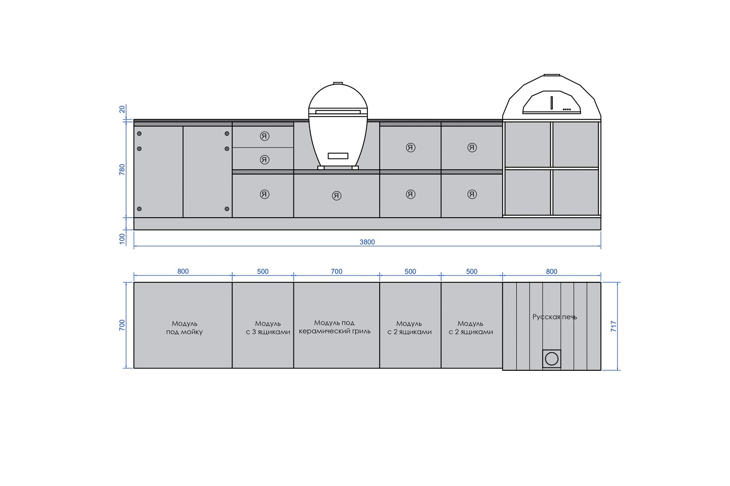 Кухня Astov BBQ № 14 (ширина 3800 мм)(готовое решение)