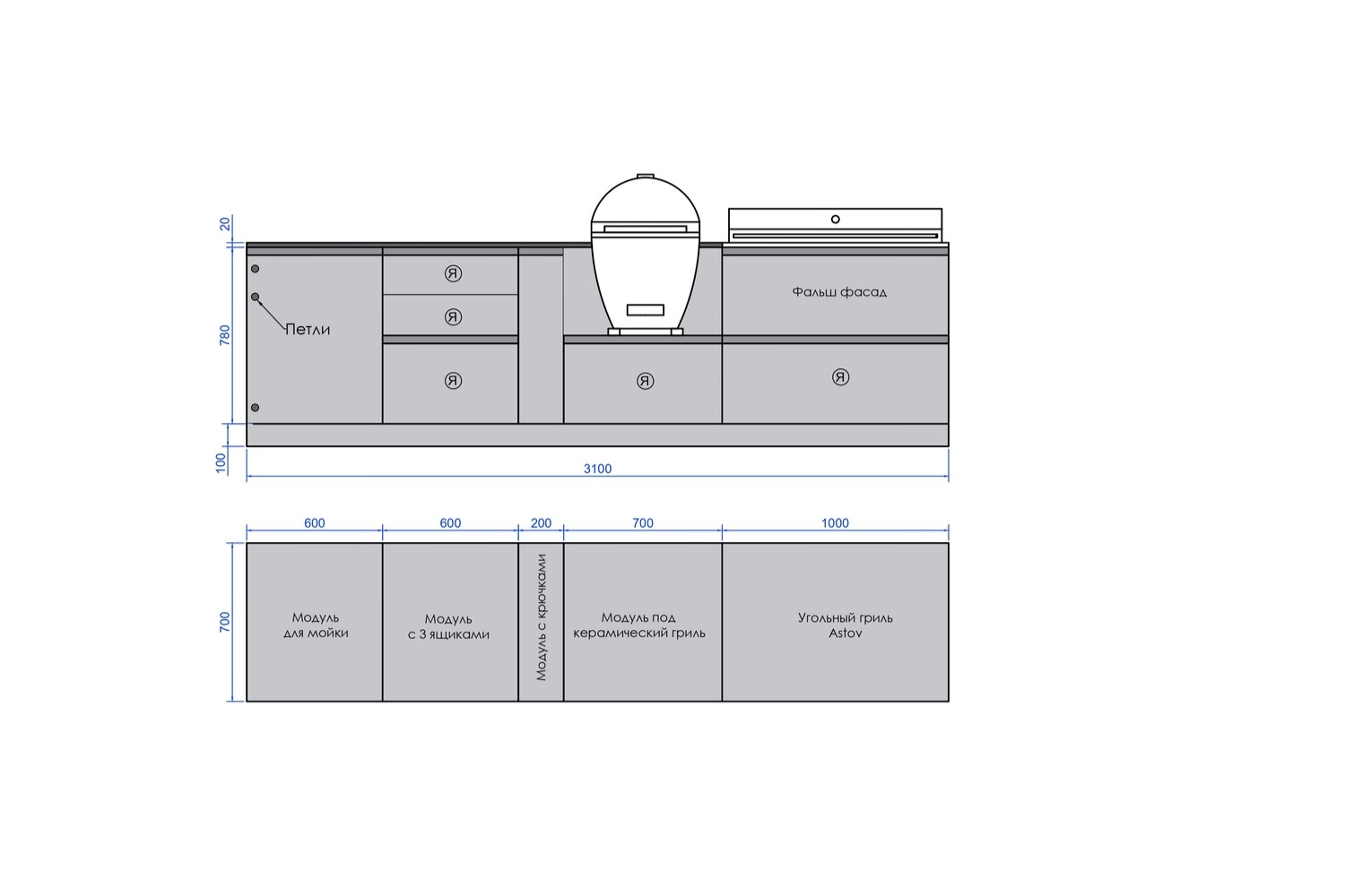 Кухня Astov BBQ № 16 (ширина 3100 мм)(готовое решение)