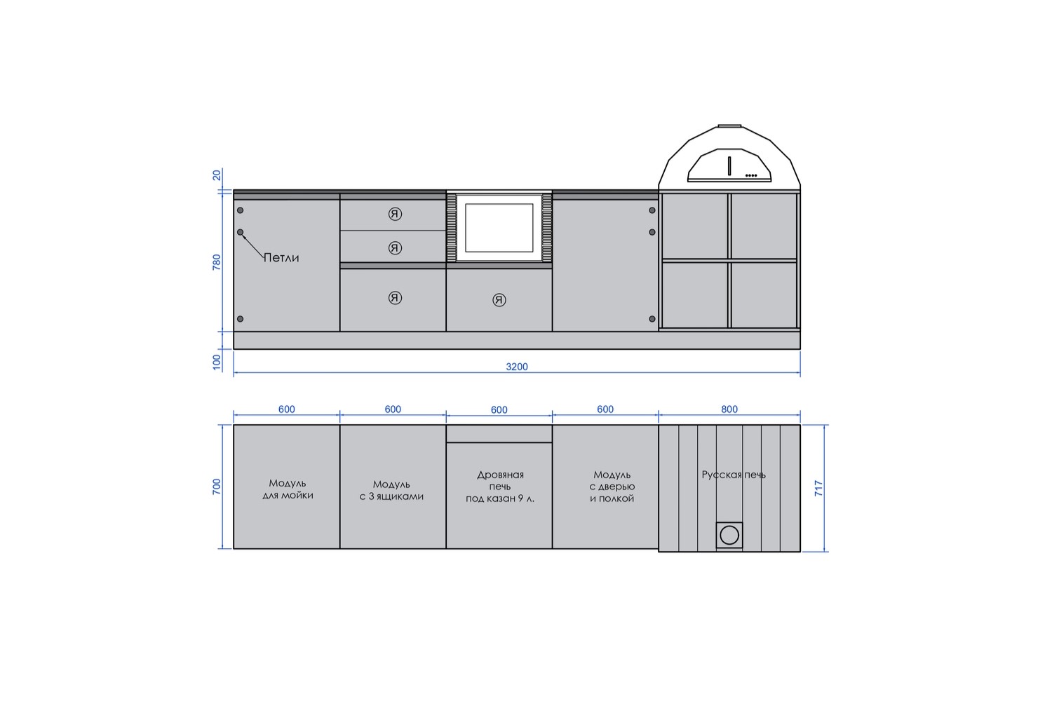 Кухня Astov BBQ № 20 (ширина 3200 мм)(готовое решение)