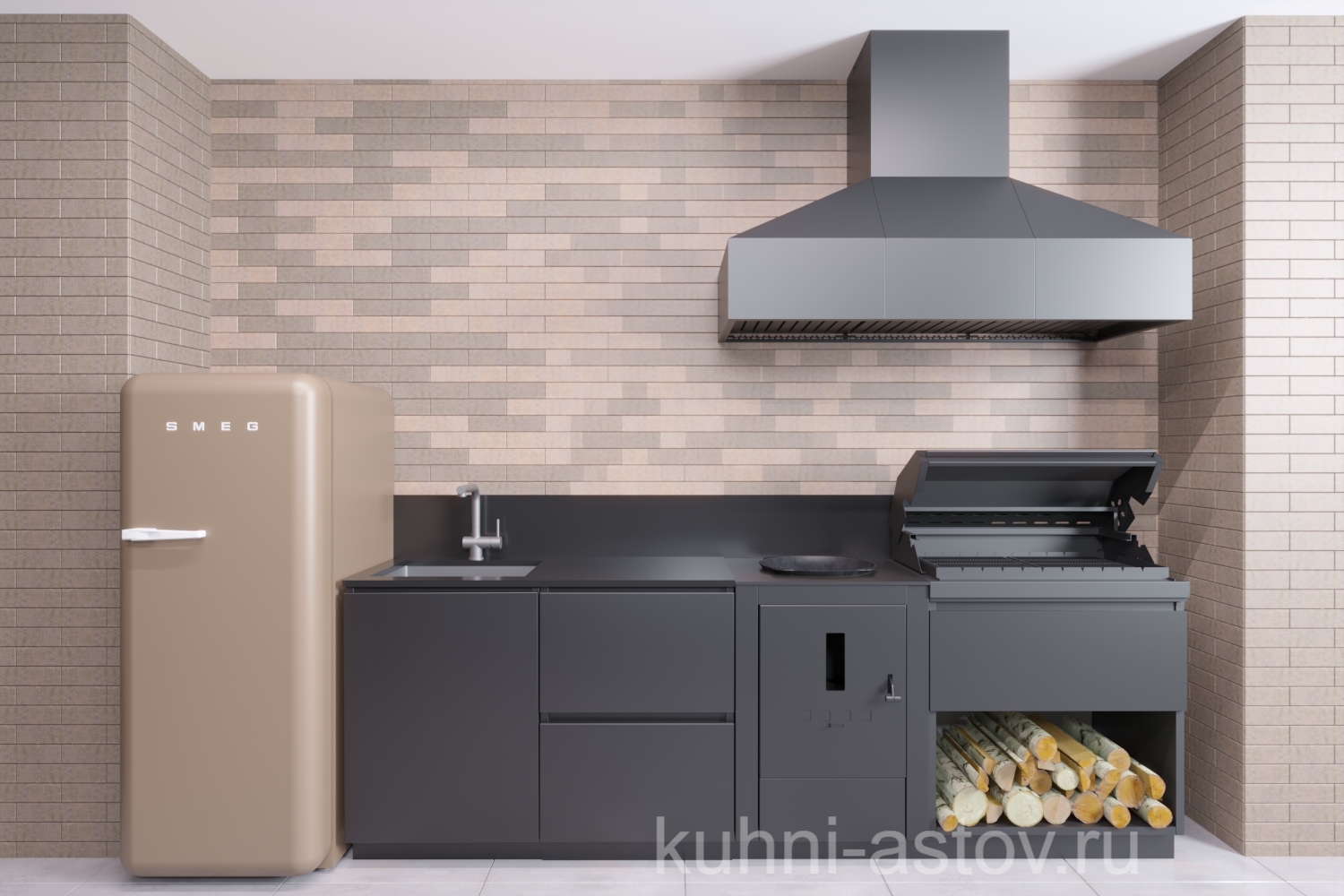 - Защита от коррозии и стильный внешний вид кухне придаёт покрытие поверхностей корпуса, фасадов, полок и вытяжного зонта порошковой краской цвета RAL9005.