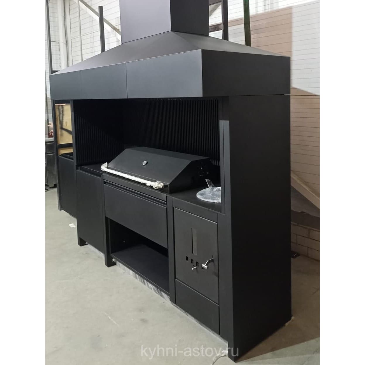Корпус и фасады выполнены из оцинкованной стали толщиной 1 мм. Фасады двухконтурные с шумоизоляцией. Корпус, фасады, вытяжной зонт покрашен порошковой краской, цвет: RAL9005. В комплектацию кухни Астов №10 столешница, дымосос не входят. ВАЖНО! При использовании вытяжного зонта в закрытом помещении НЕОБХОДИМО организовать приточно-вытяжную систему! Дополнительно можно установить: — Столешницу. — Мойку и смеситель. — Бутылочницу.